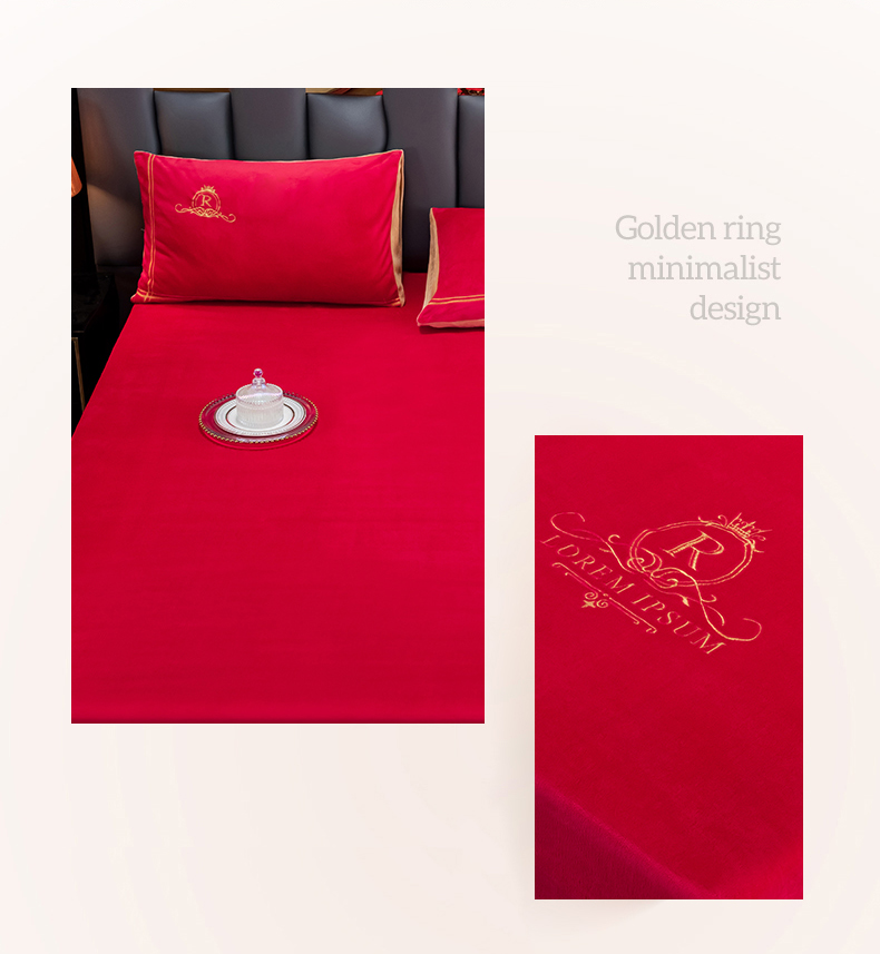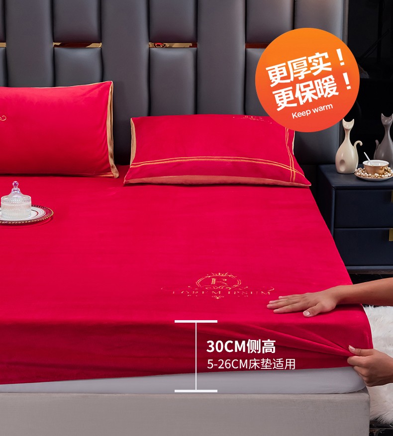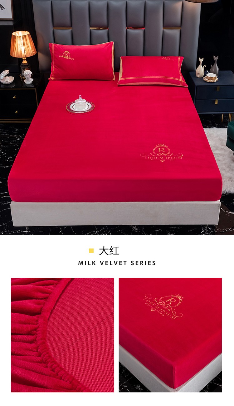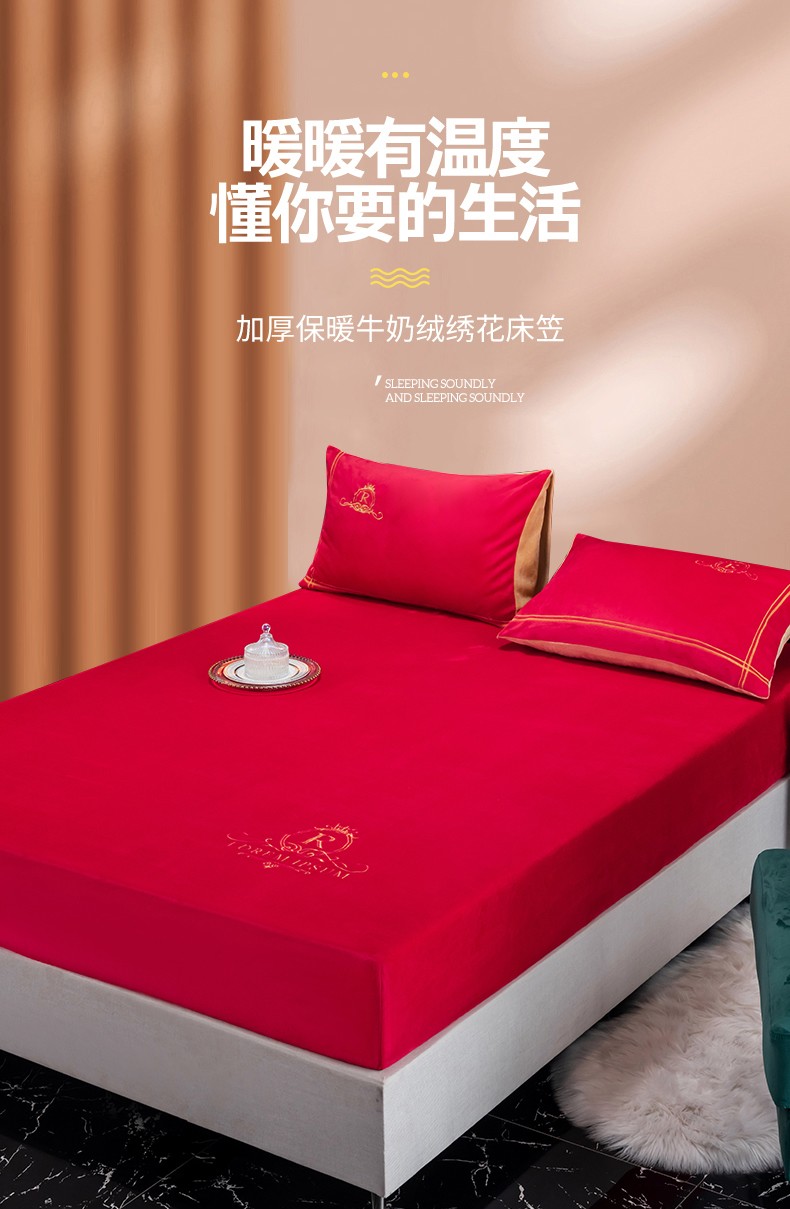 芃成家纺 2021新款牛奶绒绣花单床笠 大红