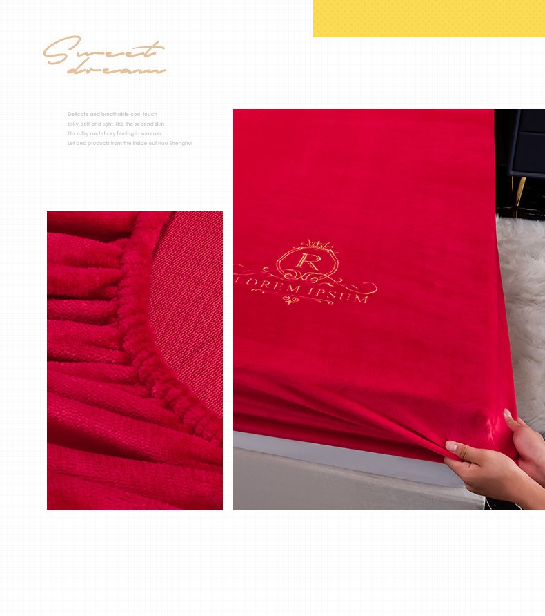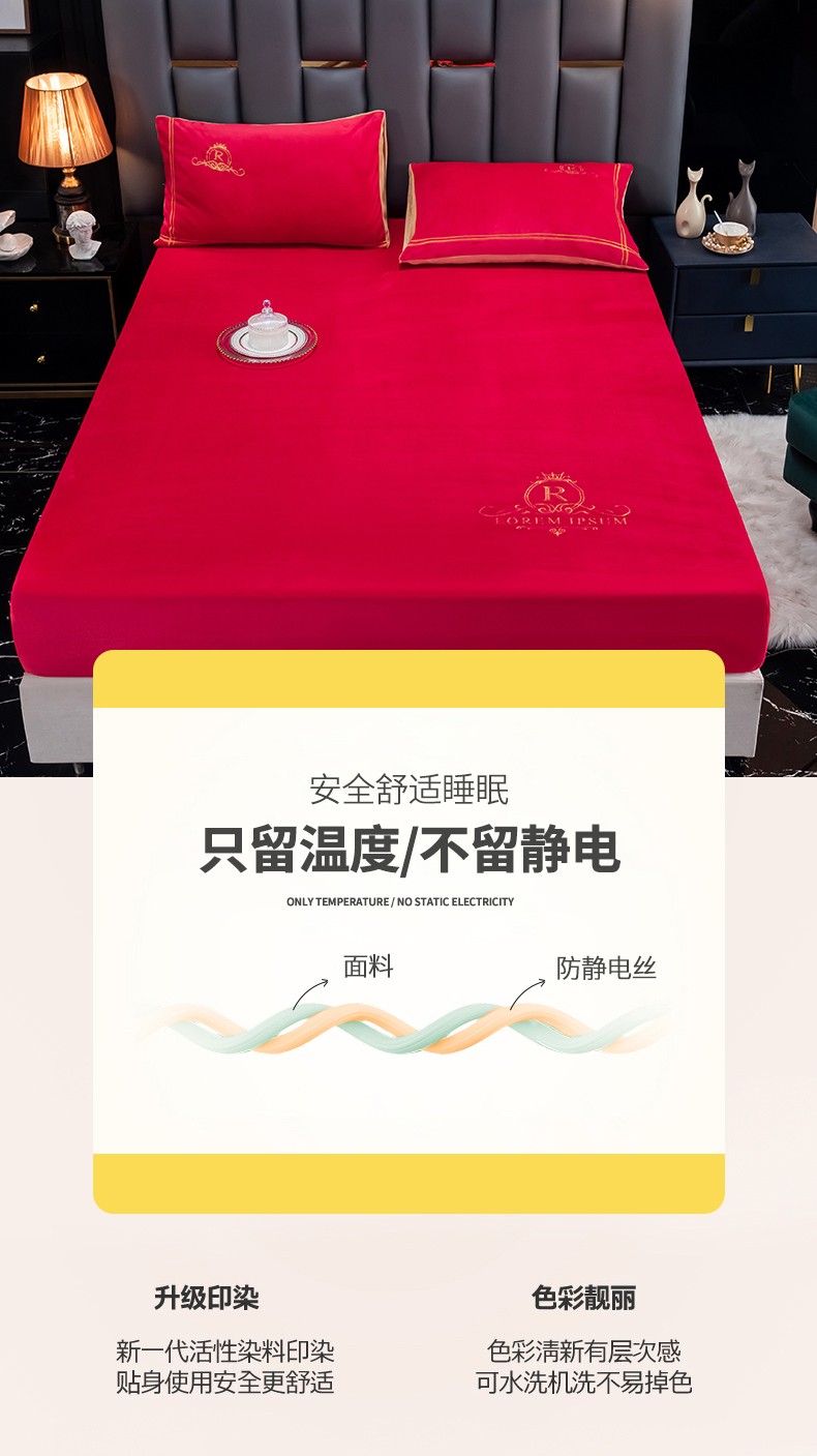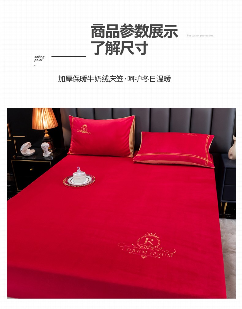 商品名称:芃成家纺 2021新款牛奶绒绣花单床笠 大红