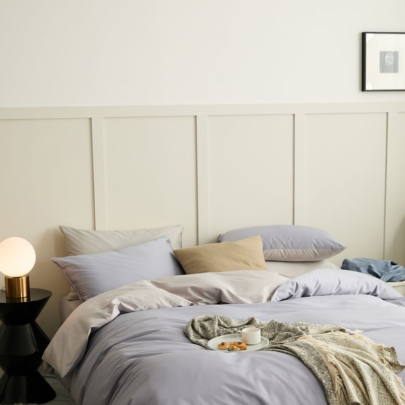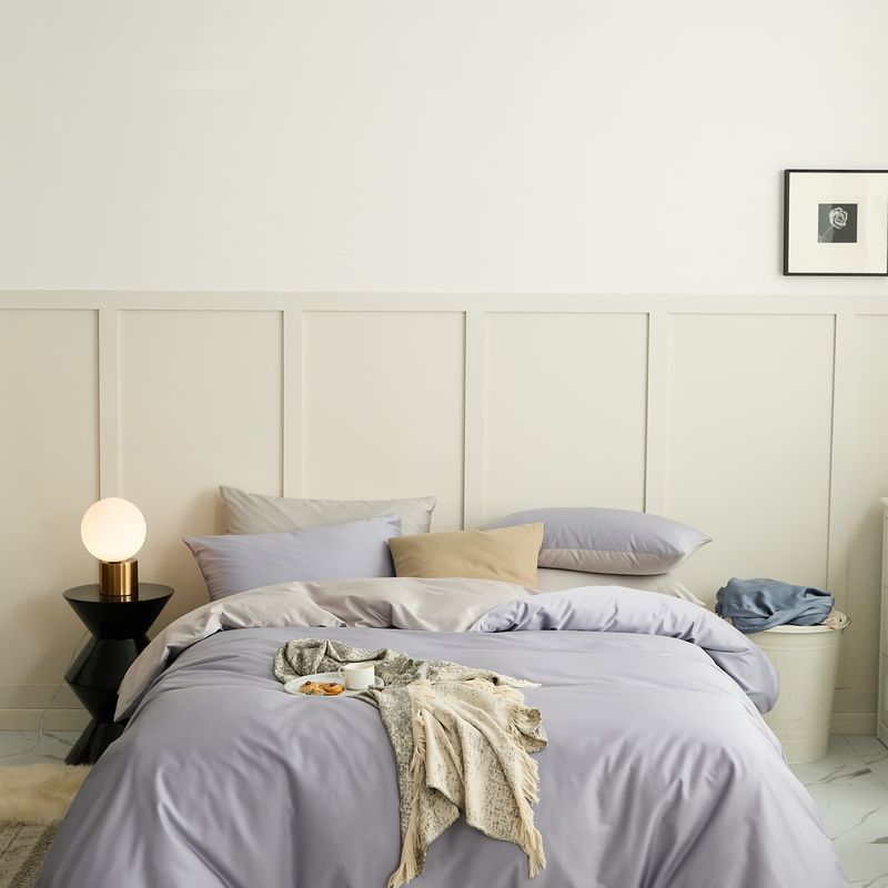 涞澳 2021新款全棉隐形拉链双拼款四件套 银芋