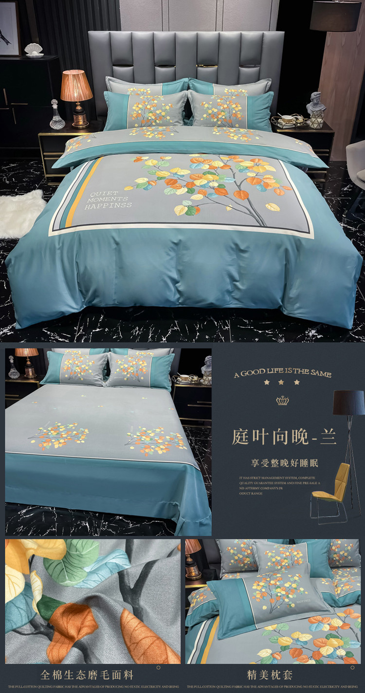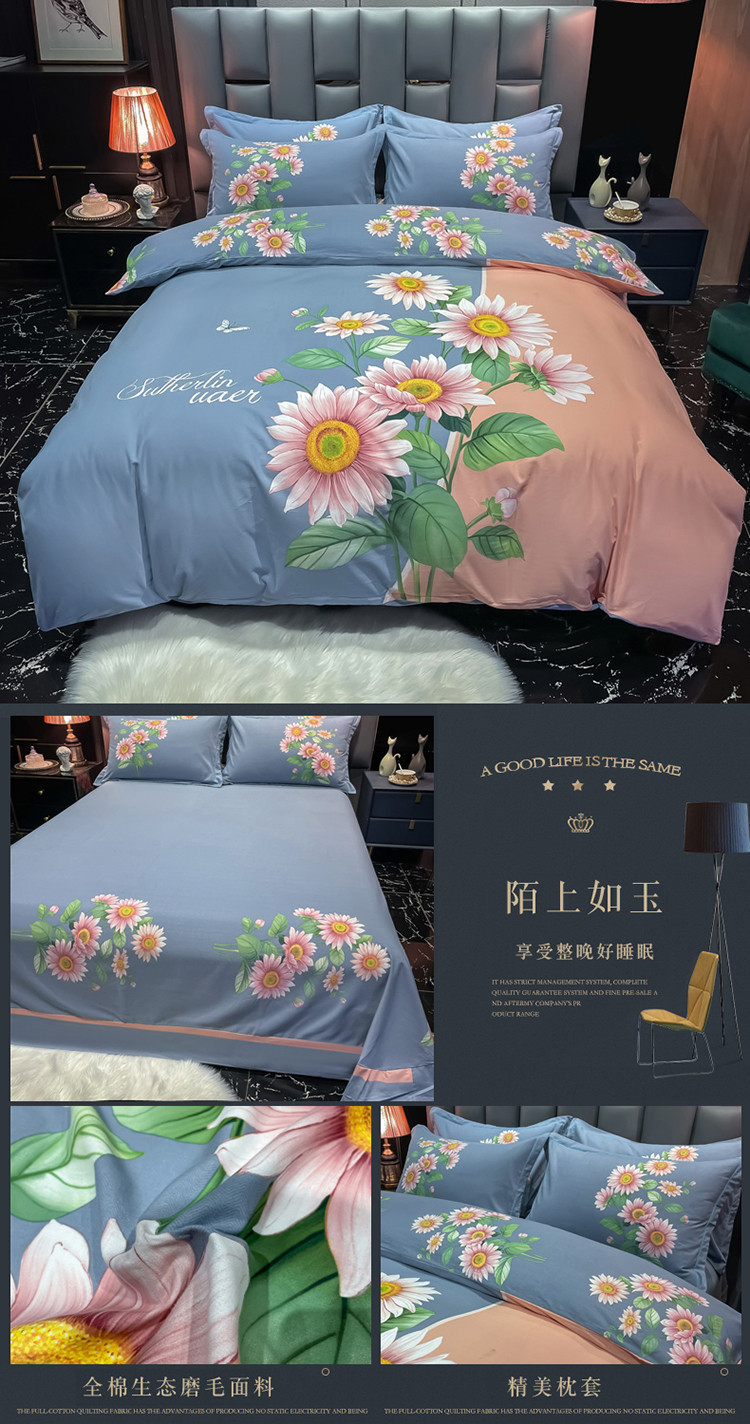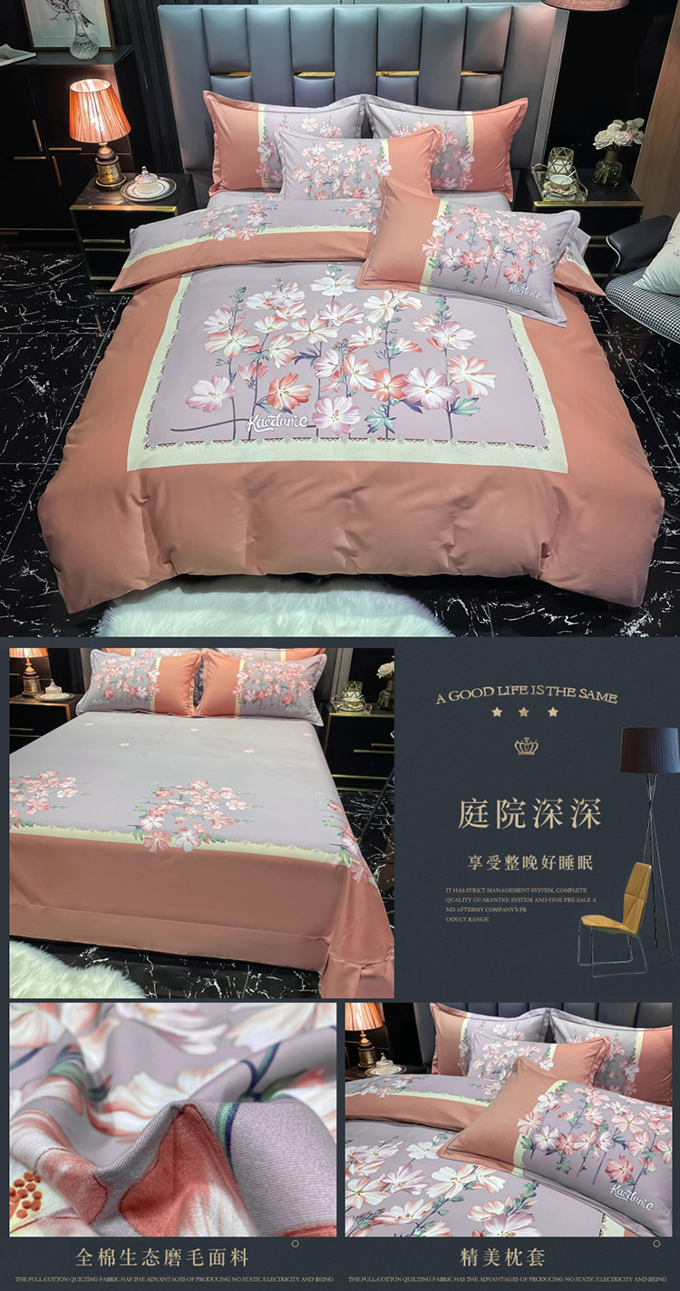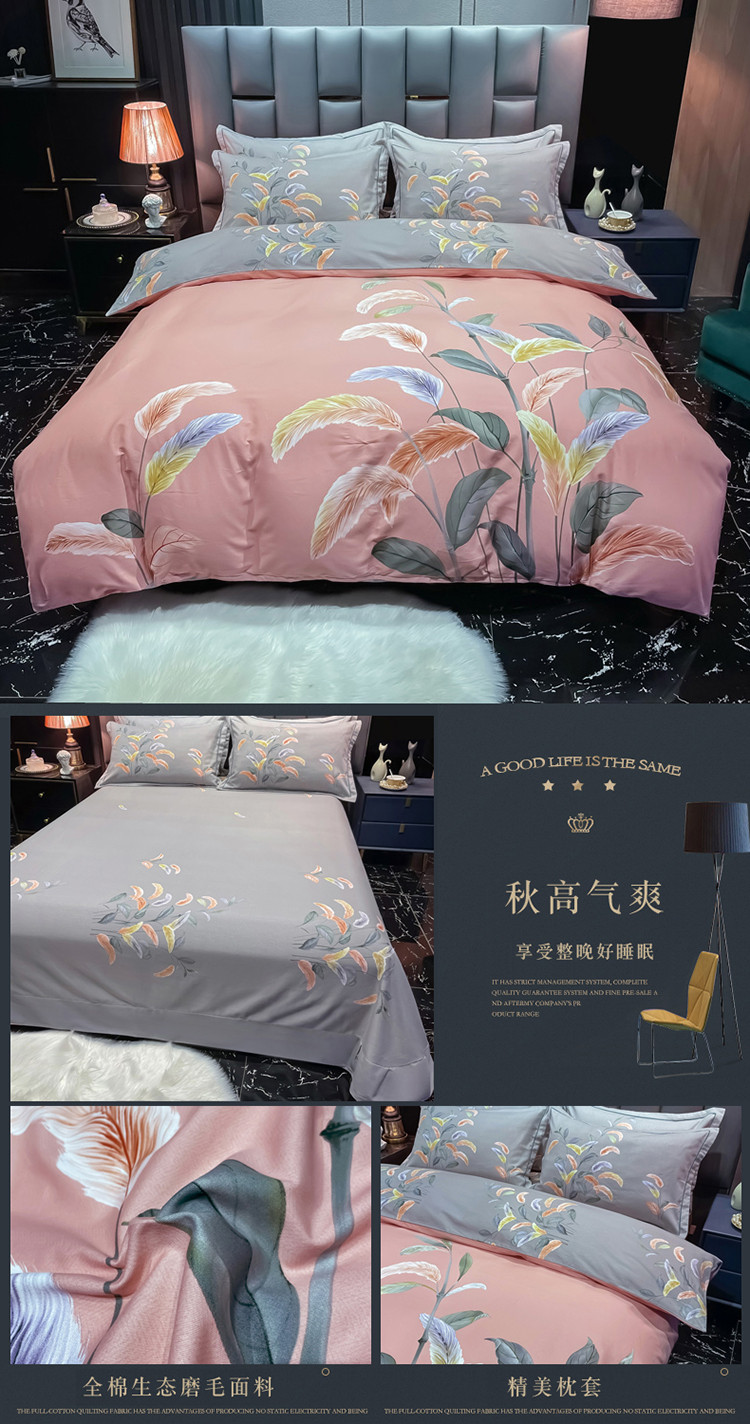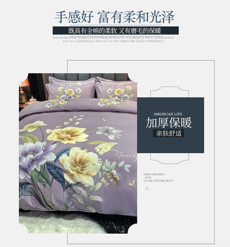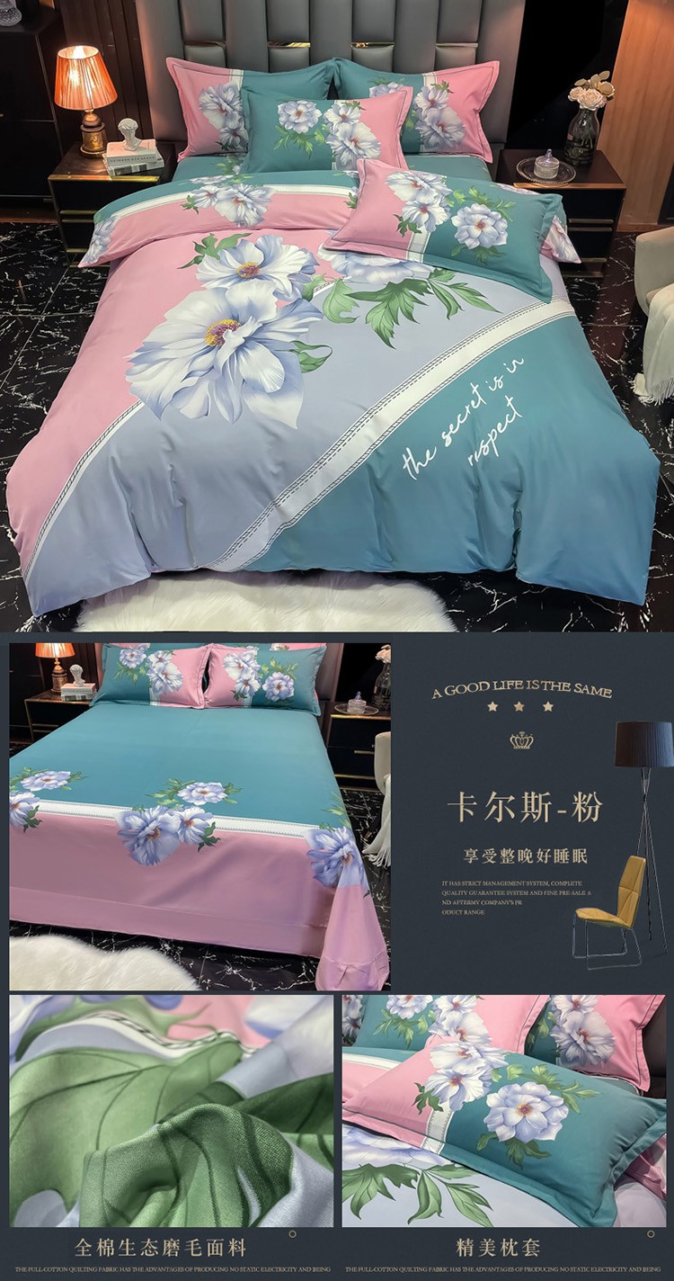 (总2)金爱家 2021新款大版磨毛花卉系列四件套