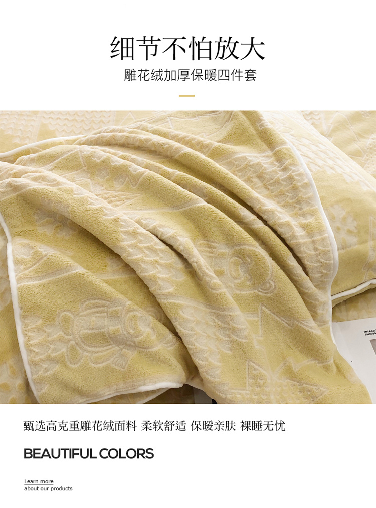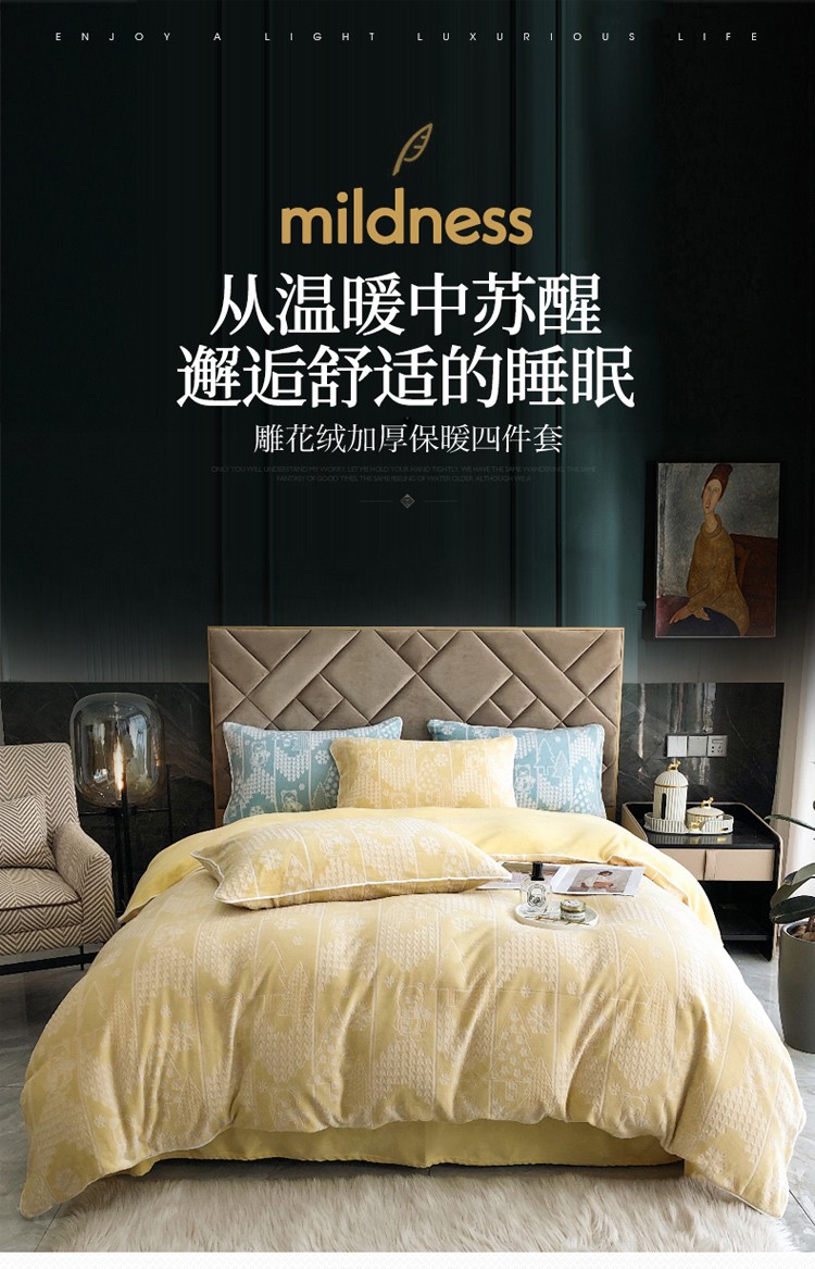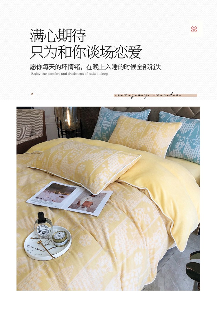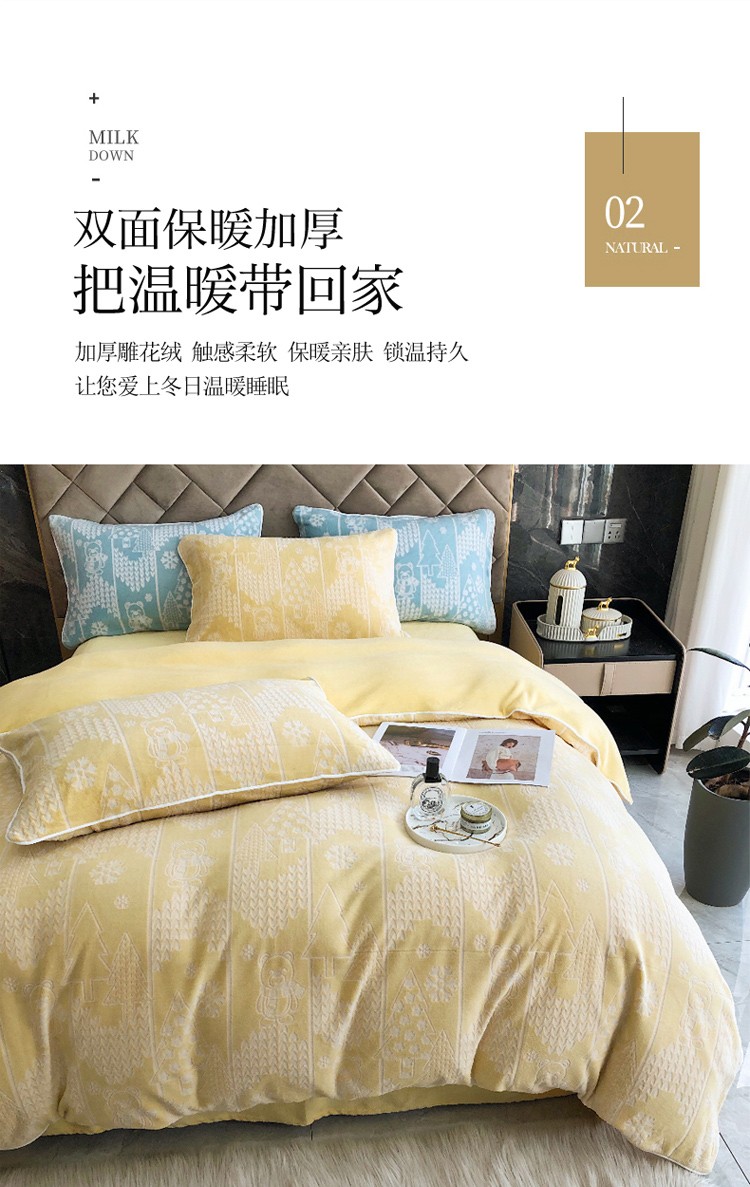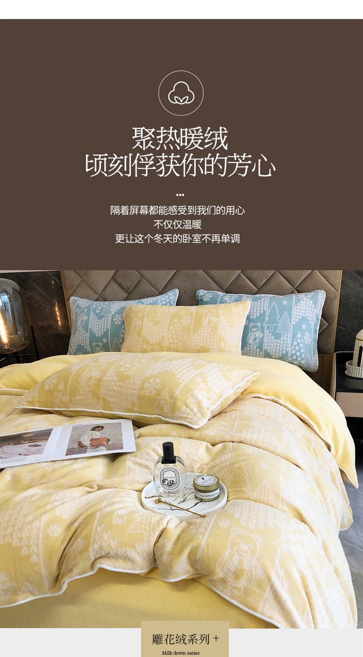 当前位置: 91家纺网 > 商品网购 > 床品套件 > 四件套 > 牛奶绒四件套 > 慕尚 2022新款雕花绒立体牛奶绒轻奢系列四件套 小熊黄