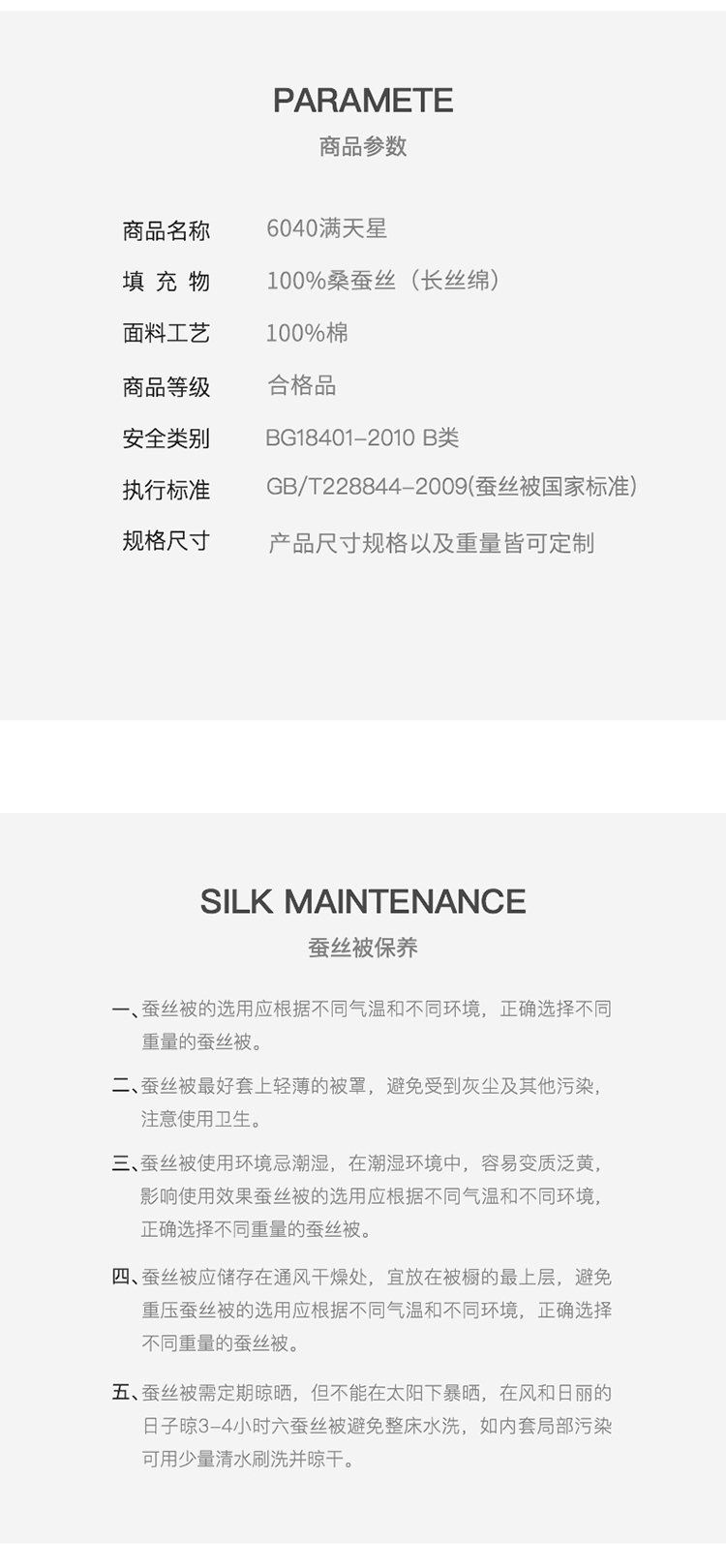 商品名称:(总)香夫 2021新款6040满天星纯蚕丝被