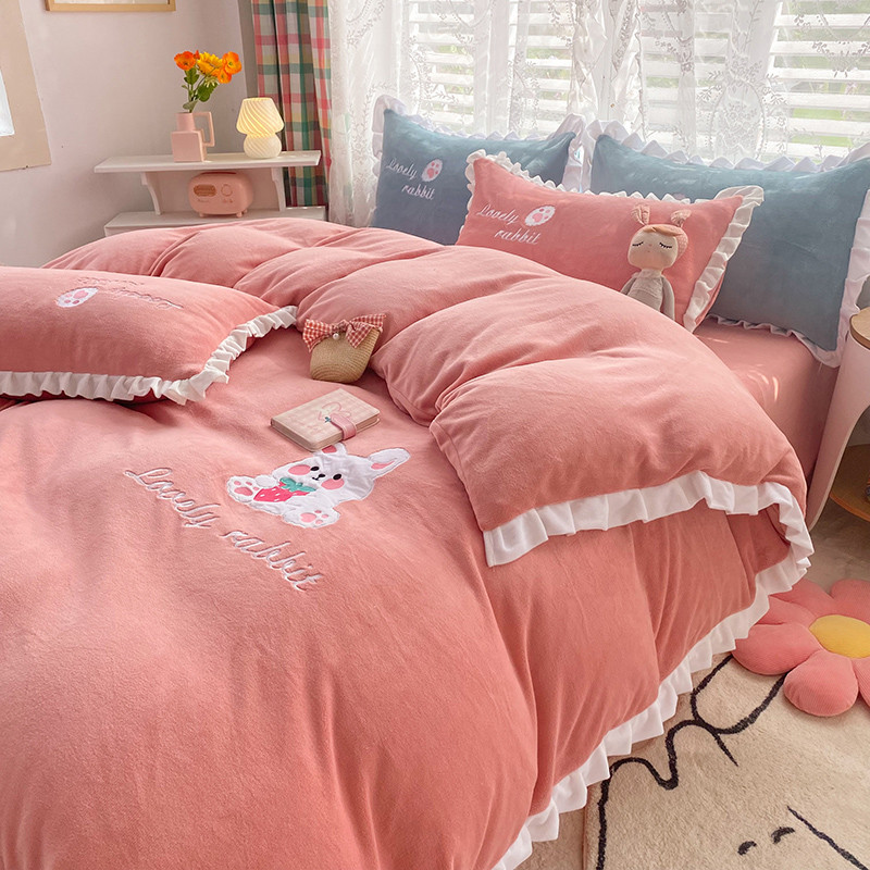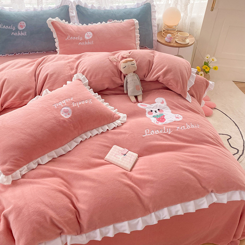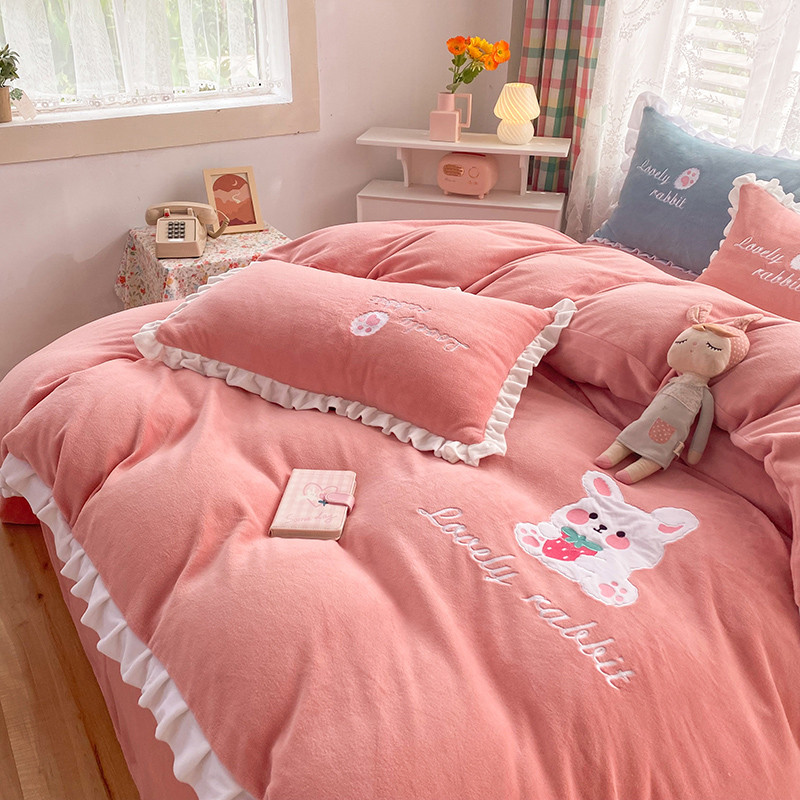 二八年华 牛奶绒毛巾绣四件套法莱水晶宝宝贝贝专版花型粉色新拍