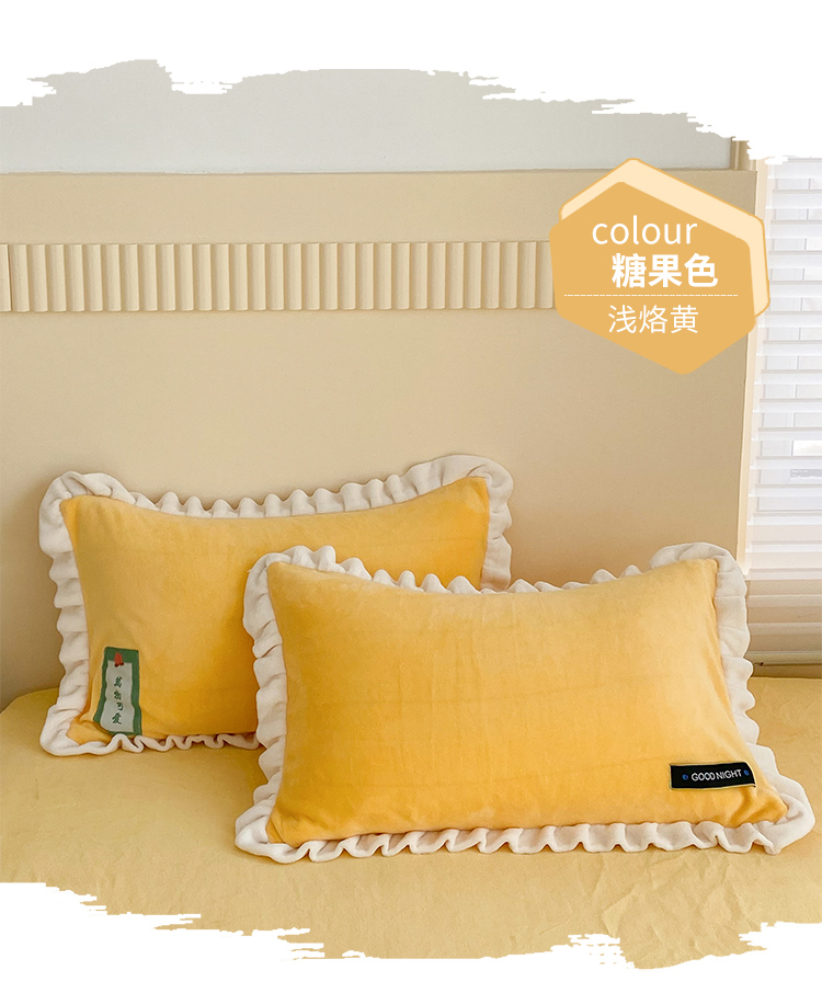 安哆啦家纺 2021新款糖果色单品枕套一对 糖果色-浅烙黄