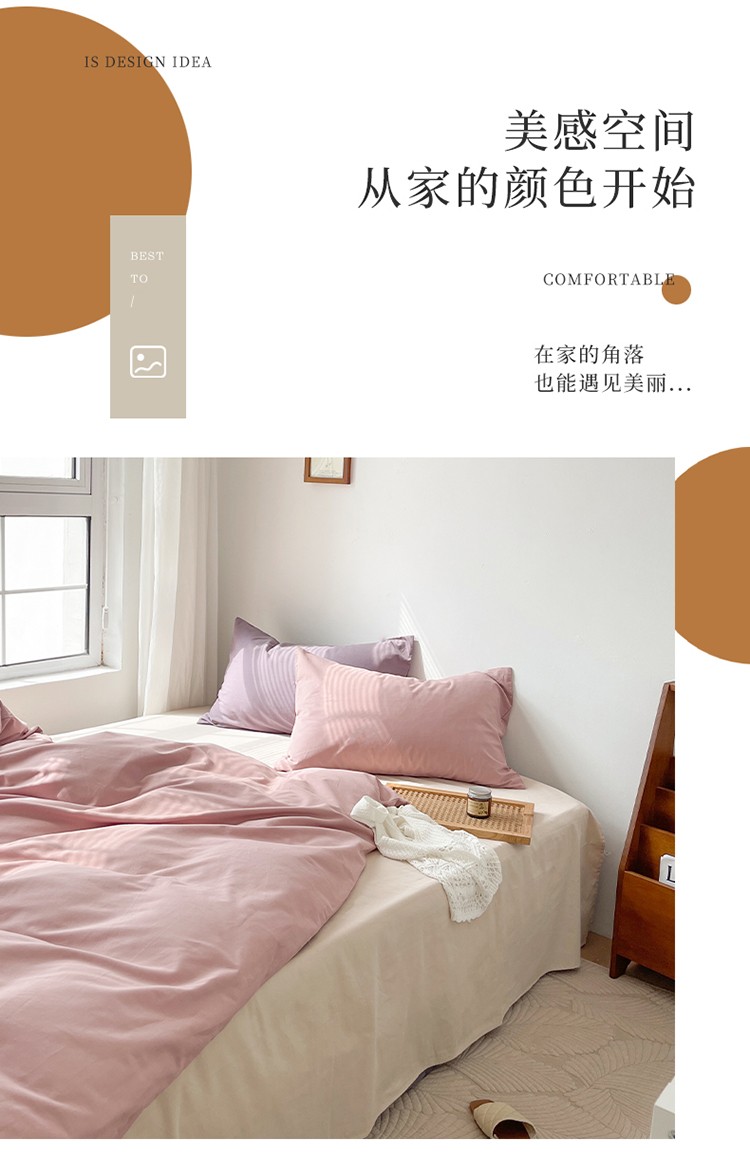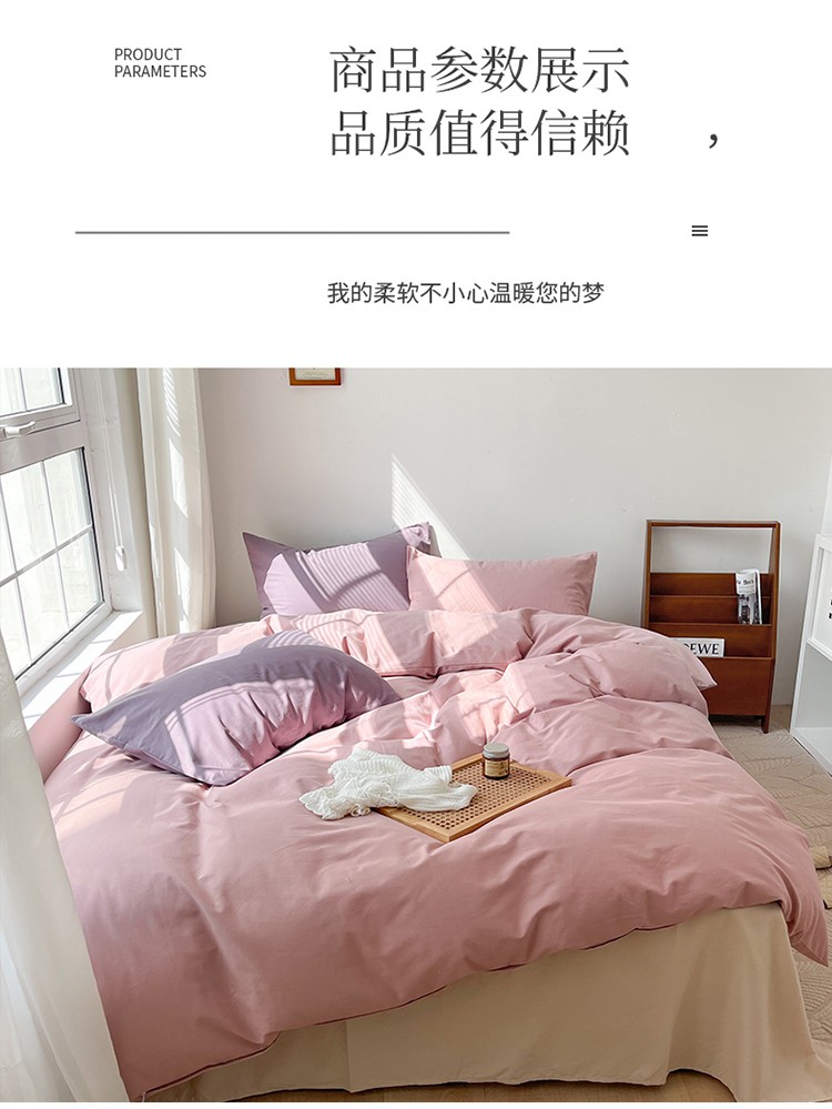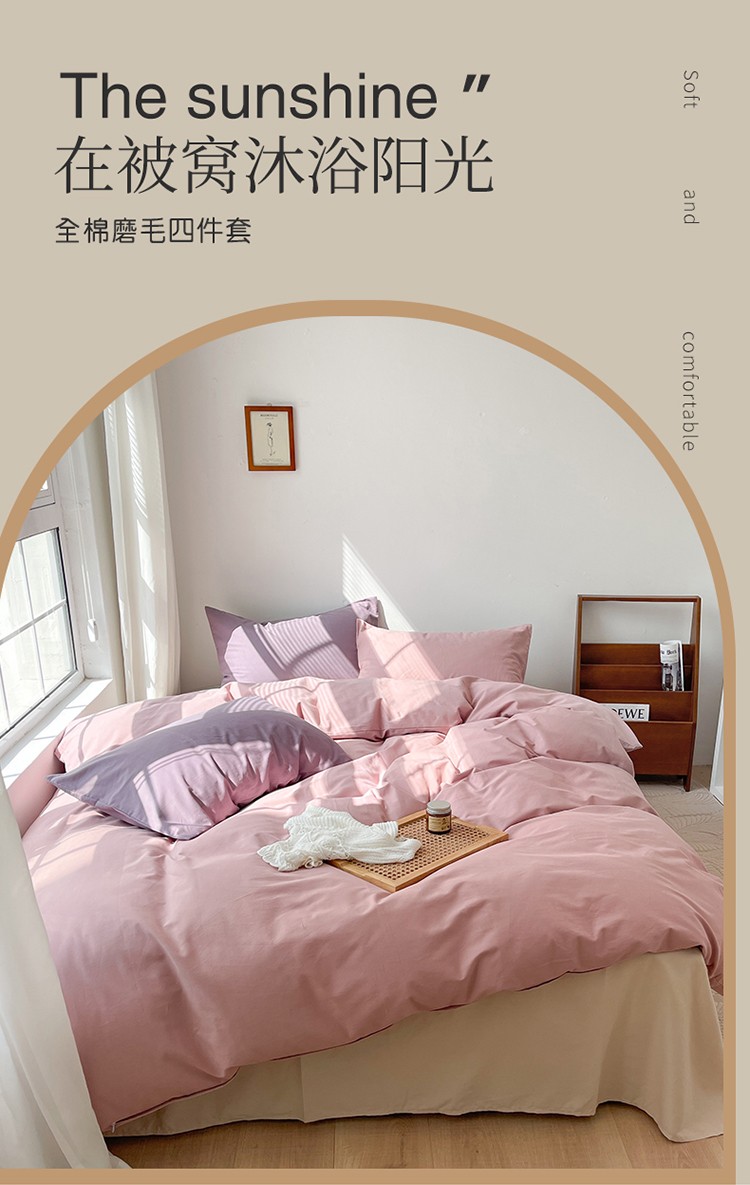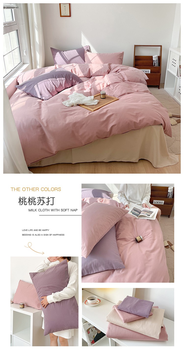 商品名称:时年家纺2021新款全棉磨毛纯色混搭四件套 桃桃苏打