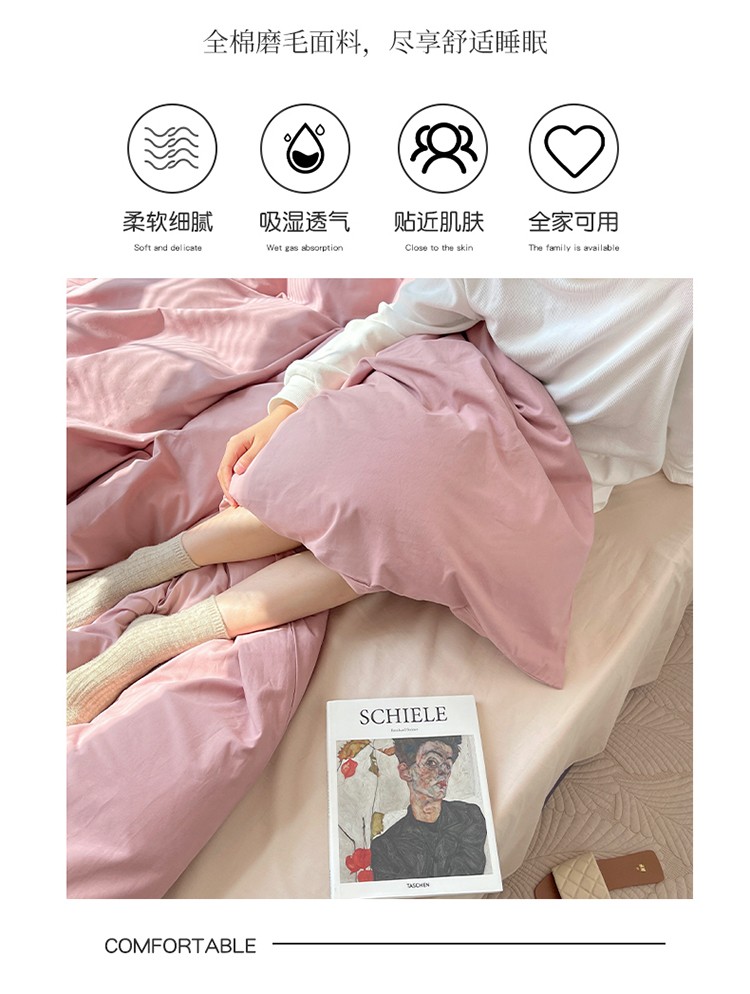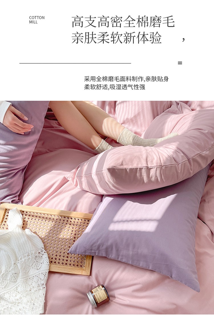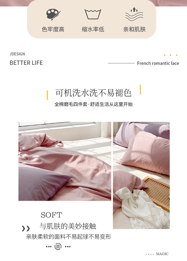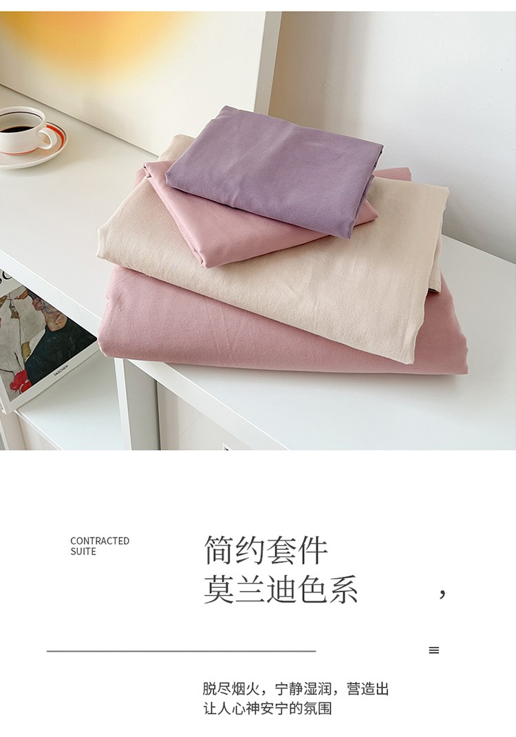 商品名称:时年家纺2021新款全棉磨毛纯色混搭四件套 桃桃苏打