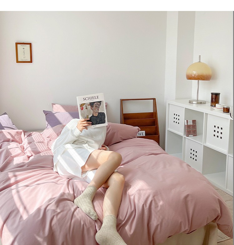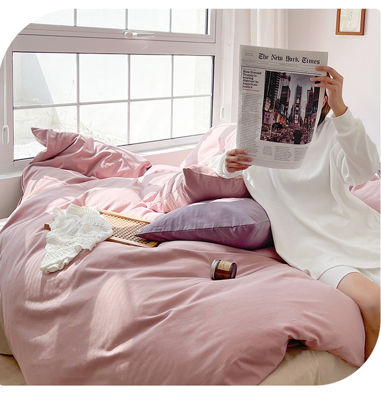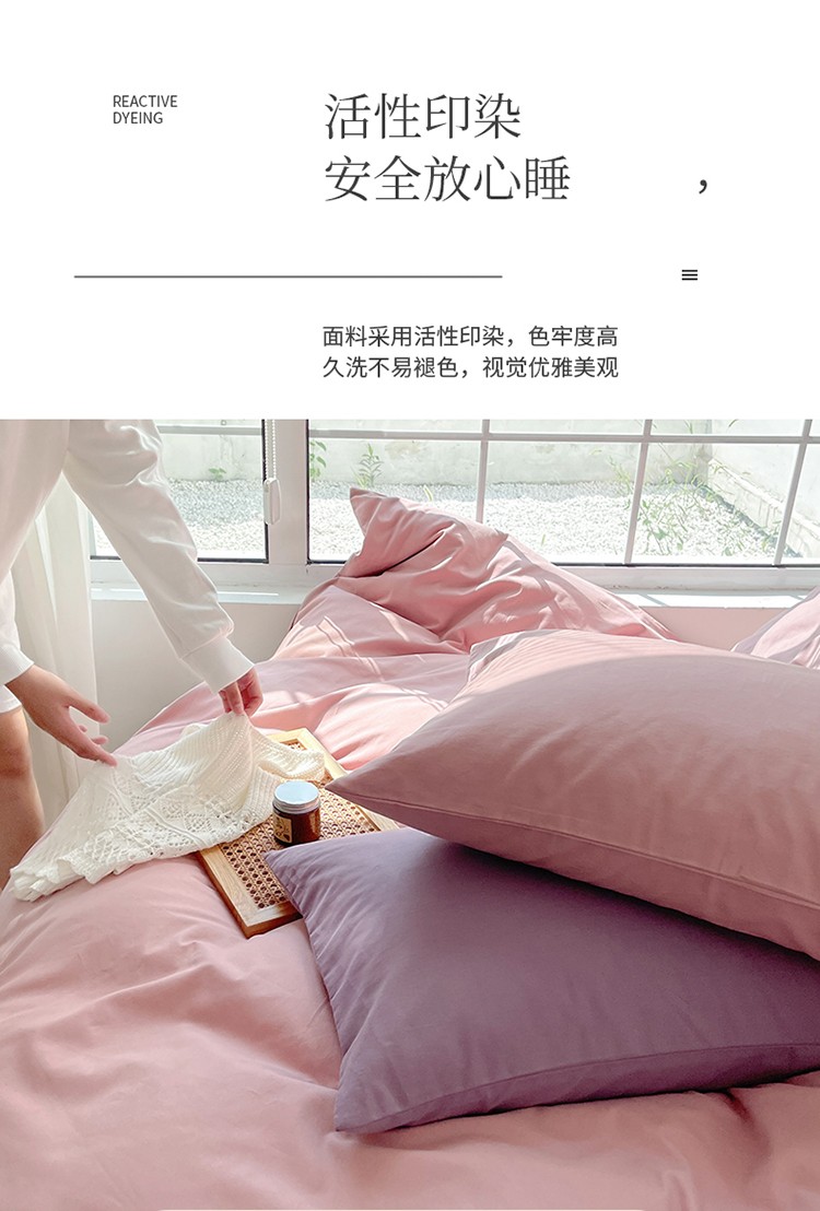 时年家纺2021新款全棉磨毛纯色混搭四件套 桃桃苏打