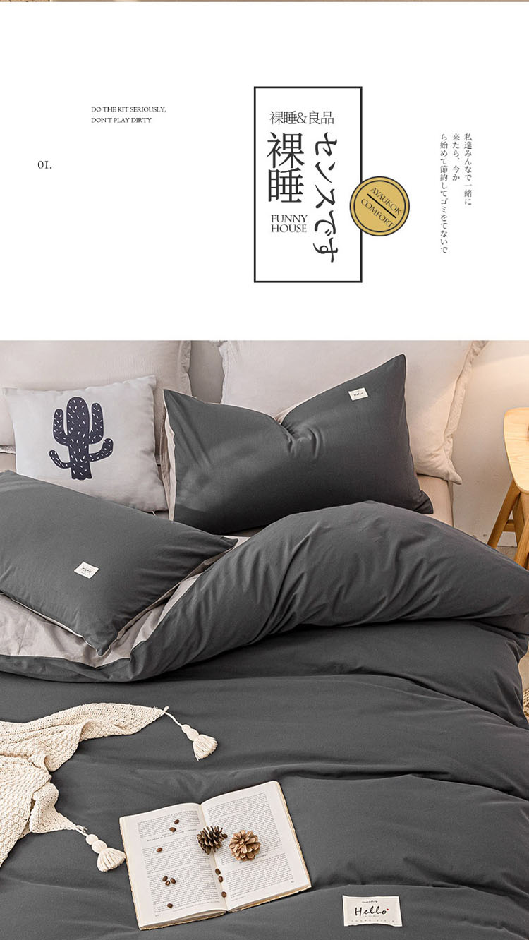 商品名称:蓝巢家纺 2021新款全棉色织水洗棉单被套 深灰浅灰