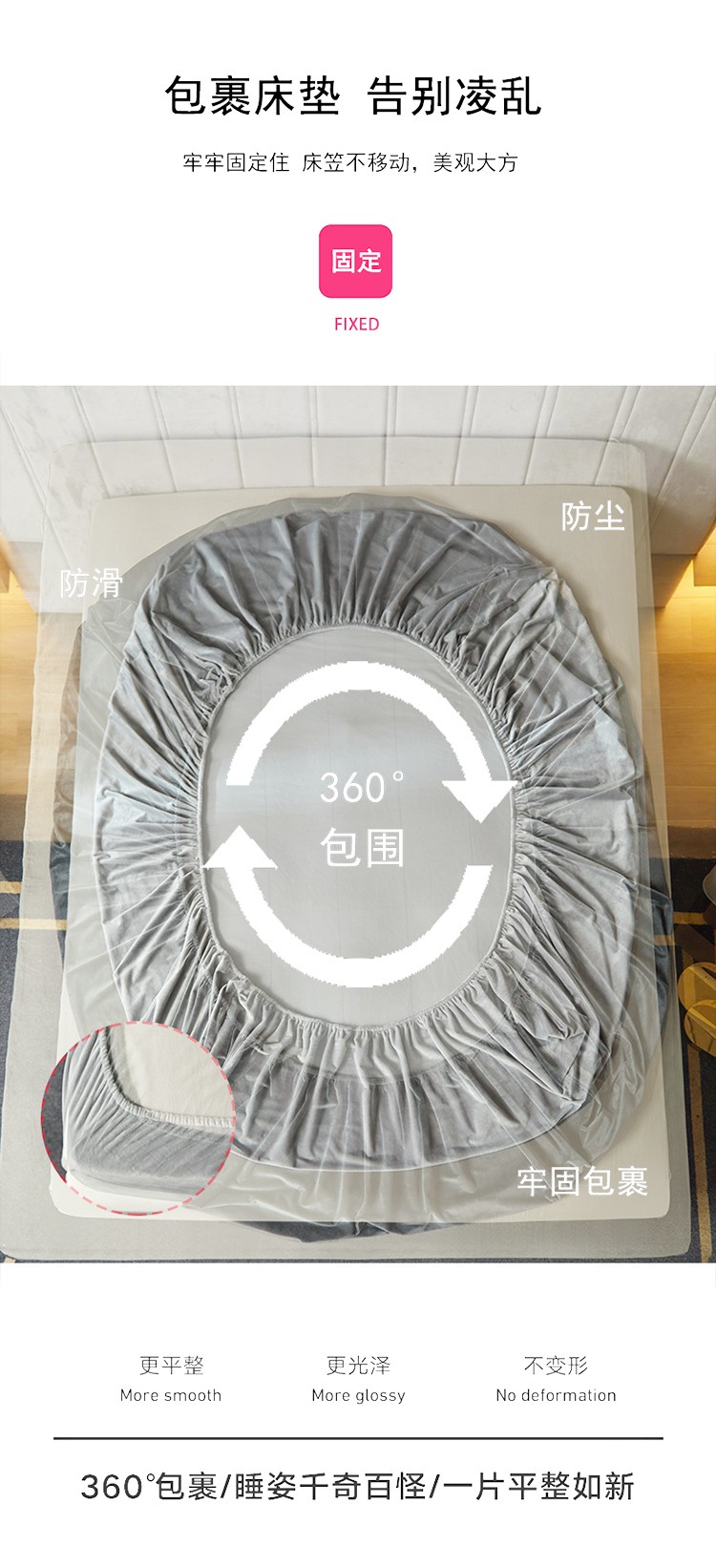瑞驰家纺 2022新款A类婴儿绒保暖单床笠 摩登灰
