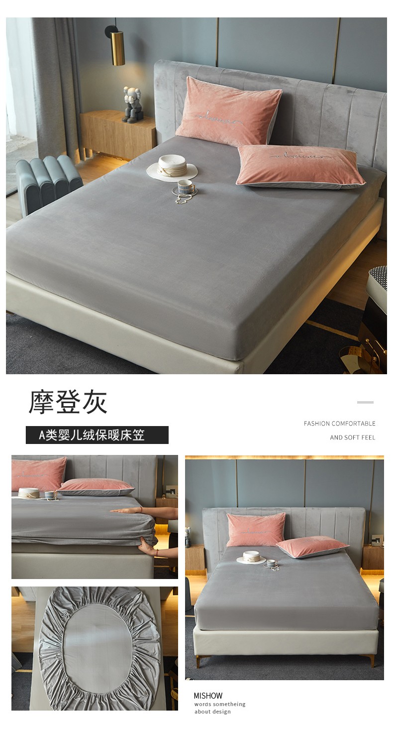 商品名称:瑞驰家纺 2022新款A类婴儿绒保暖单床笠 摩登灰