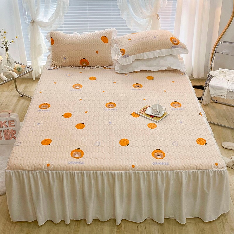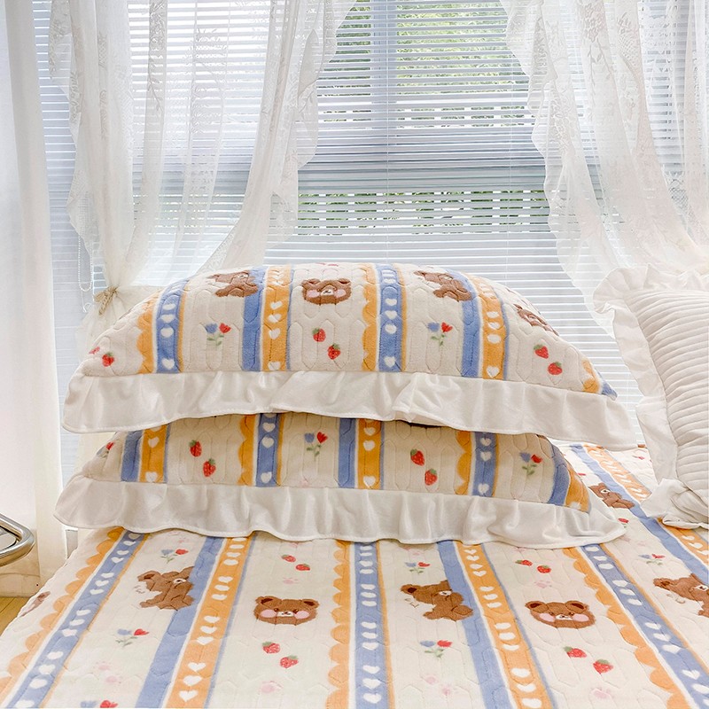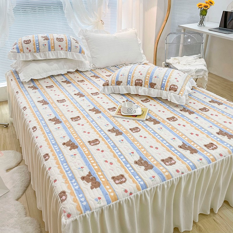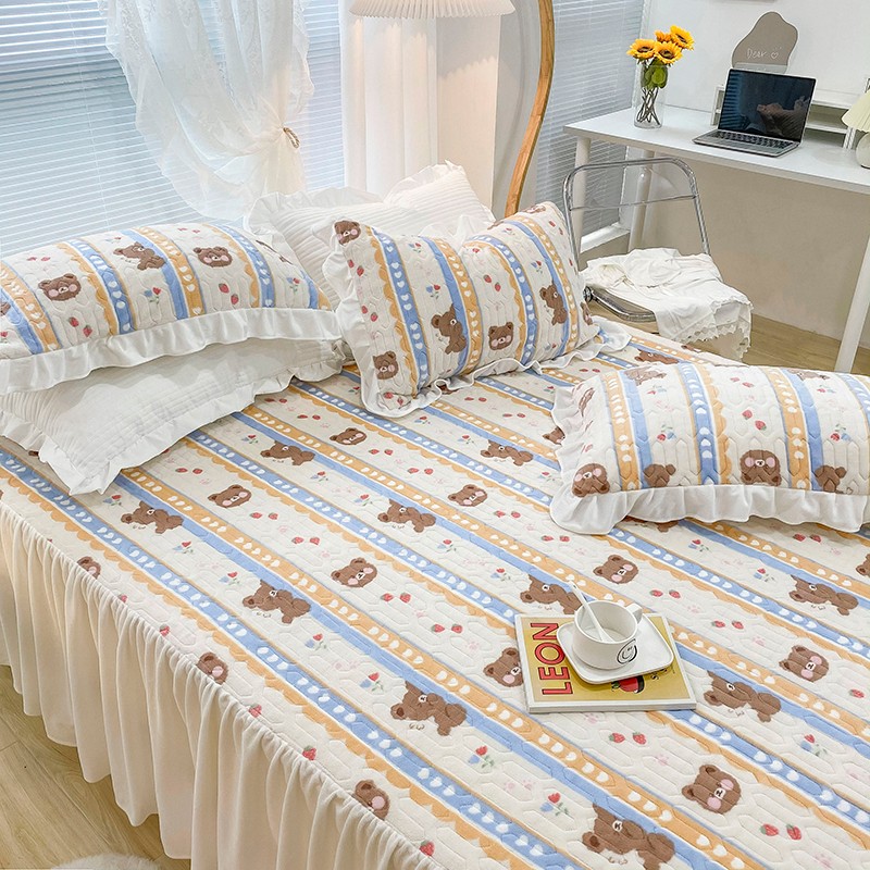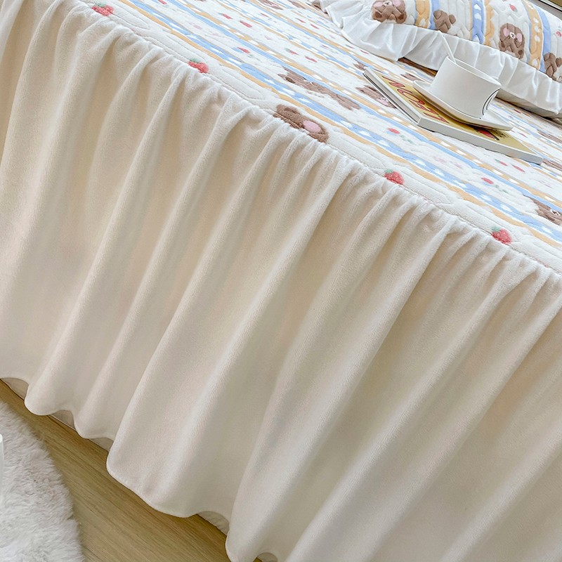 米莱家纺 2021新款牛奶绒夹棉床裙三件套 可爱熊