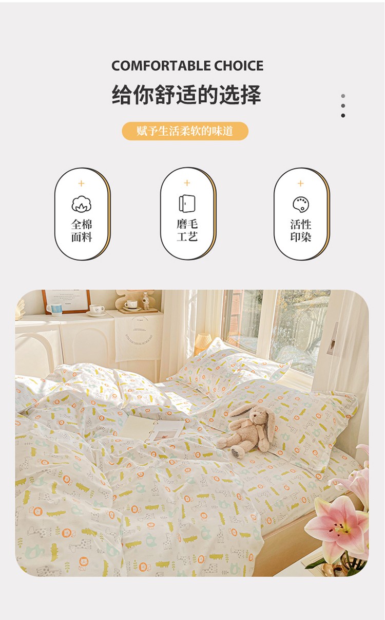 (总)呗旺鹿 2025新款卡通棉+牛奶绒四件套系列,QQ乐园,多彩笑脸,小萌鸭,蘑菇狗,奶油小熊,曲奇小熊