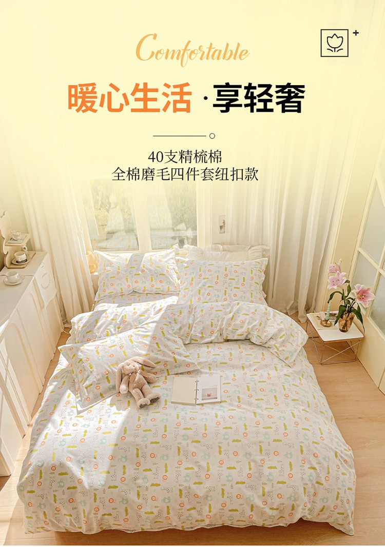 (总)呗旺鹿 2022新40s精梳棉13372全棉磨毛四件套