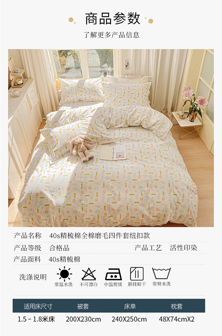 商品名称:(总)呗旺鹿 2022新40s精梳棉13372全棉磨毛四件套
