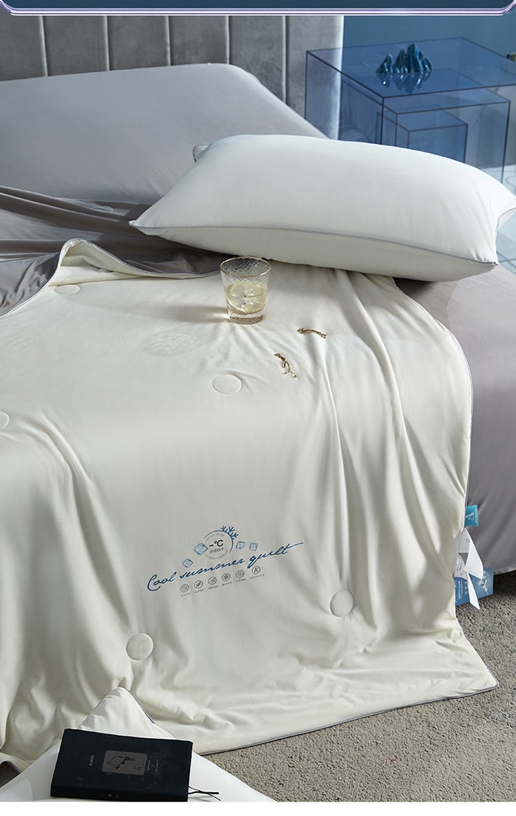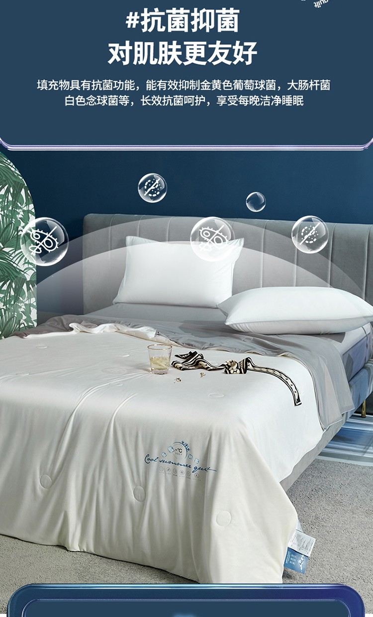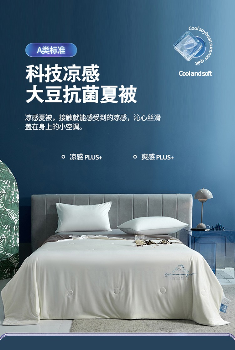 当前位置: 91家纺网 > 商品网购 > 床品套件 > 四件套 > 夏被四件套 > 头等舱 2022新款科技A类凉感大豆抗菌夏被 凉感白灰