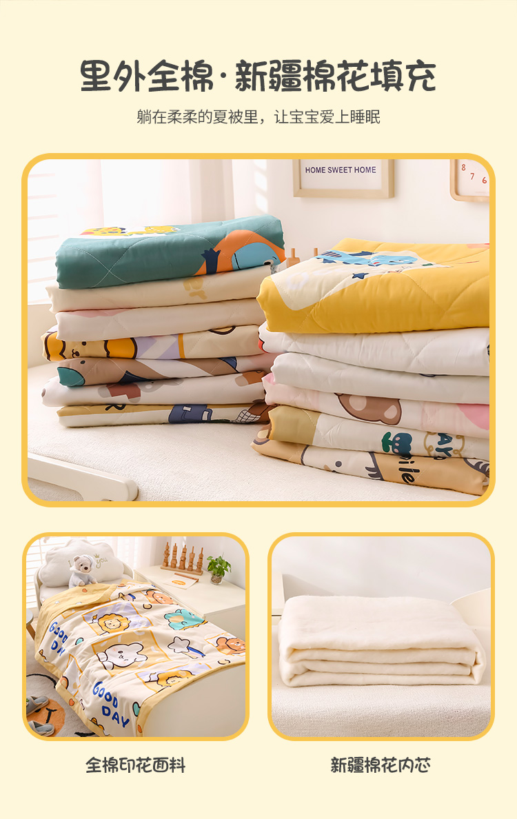 (总)芭伯妮 2025新款40支全棉新疆棉花幼儿园儿童夏被,白桃公主,虎头虎脑,嘉年华,开学季,恐龙家族-黄,恐龙家族-绿,奶油兔,小兔叽,幸福宝贝,宝宝巴士-蓝,宝宝巴士-米,动漫恐龙-米,欢乐萌熊,里德熊,彩虹喵,蜡笔画,汽车乐园