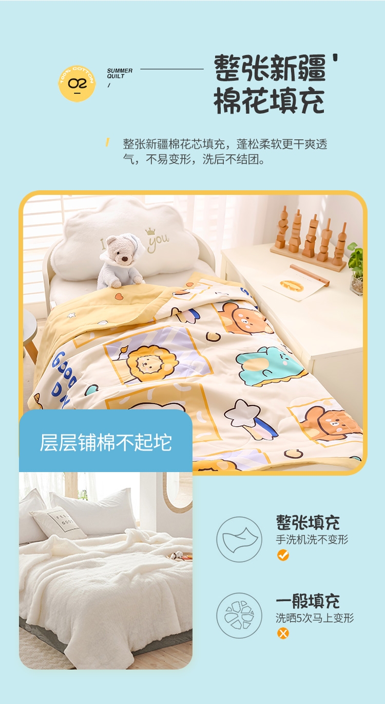 商品名称:芭伯妮2025新款40支全棉新疆棉花幼儿园儿童夏被嘉年华