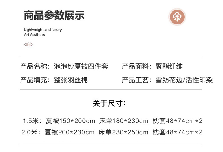 商品名称:(总)寐居 2022新款韩版公主风泡泡纱夏被四件套