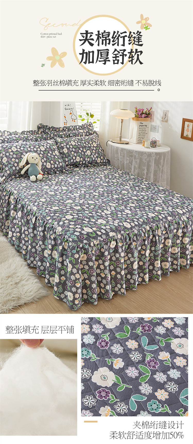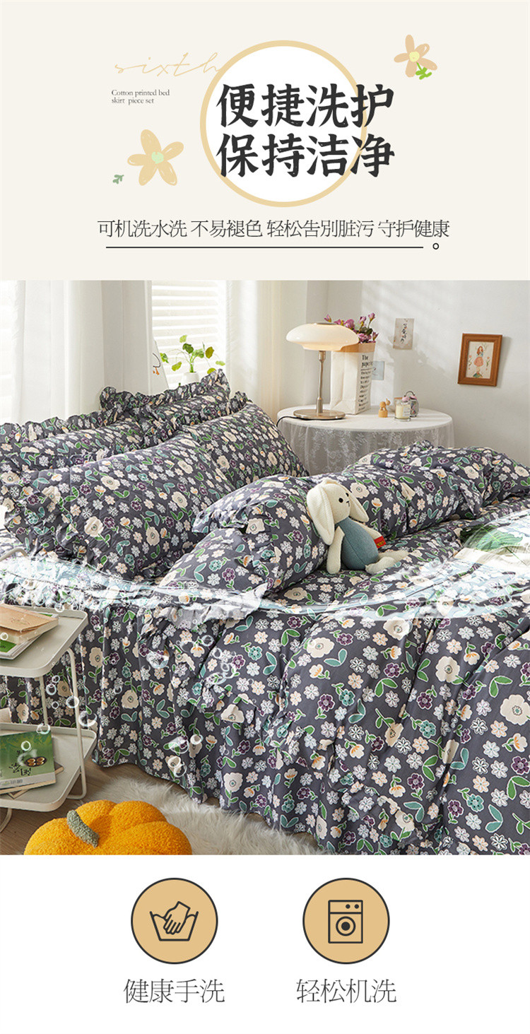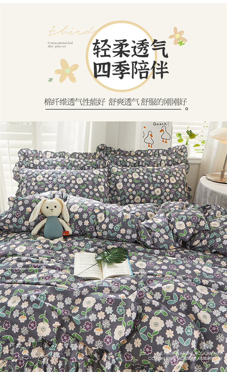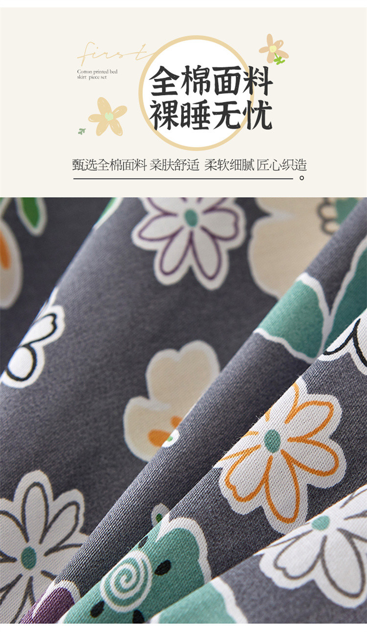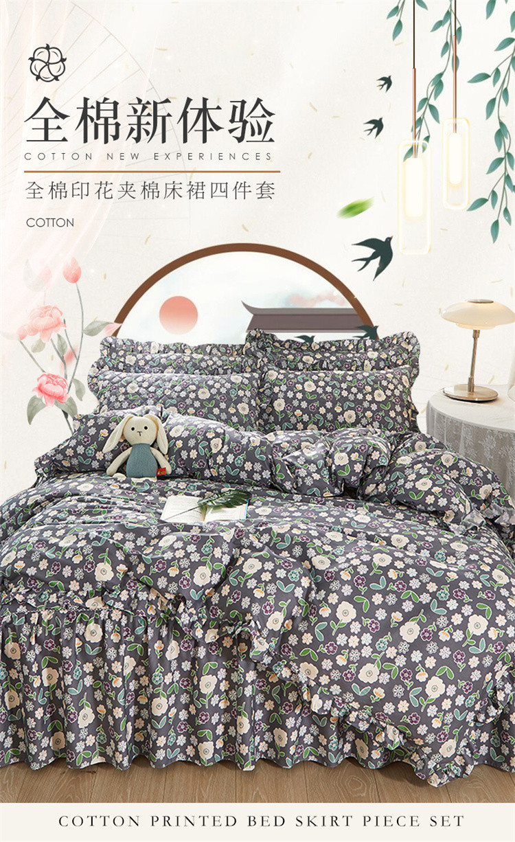 当前位置: 91家纺网 > 商品网购 > 床品套件 > 四件套 > 全棉普通四件套 > 十个点 2022新款全棉夹棉印花床裙四件套 花颜