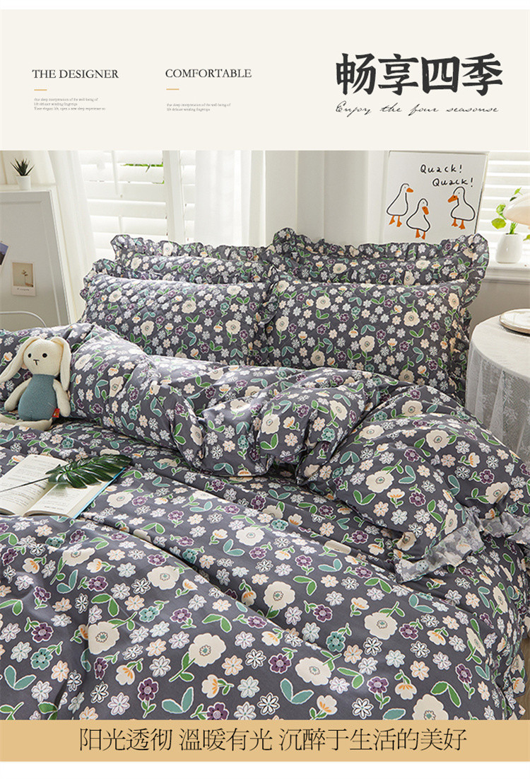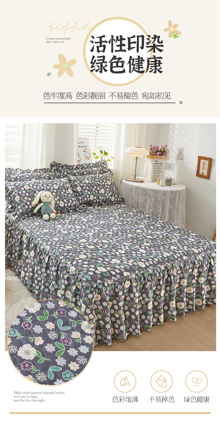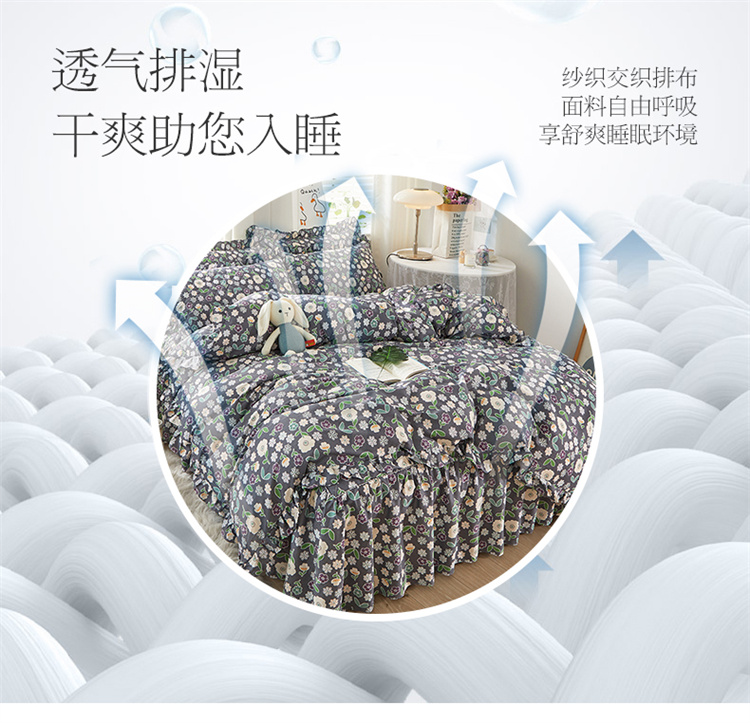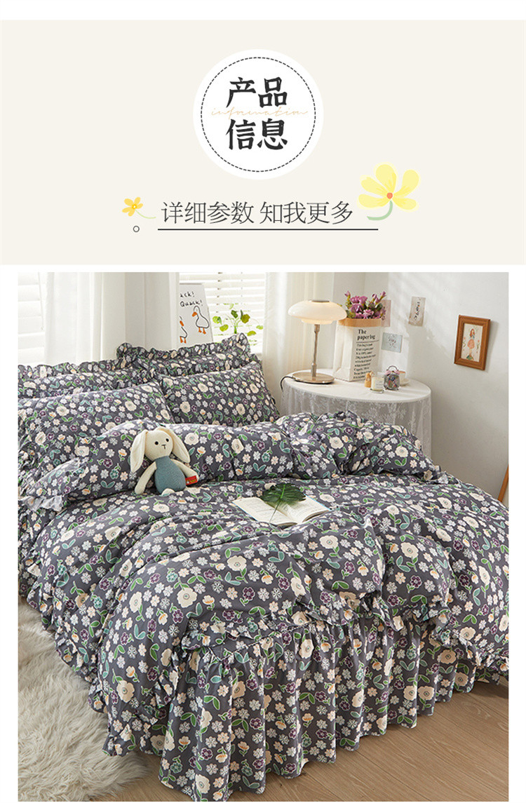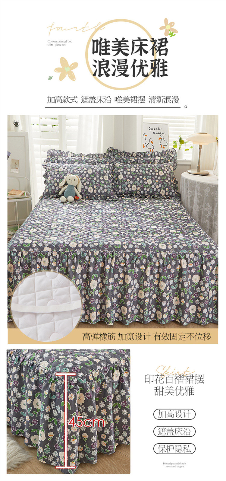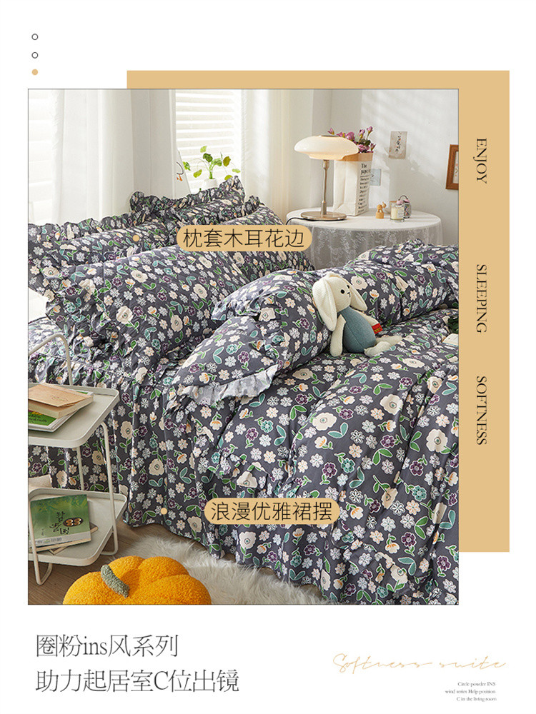 当前位置: 91家纺网 > 商品网购 > 床品套件 > 四件套 > 全棉普通四件套 > 十个点 2022新款全棉夹棉印花床裙四件套 花颜
