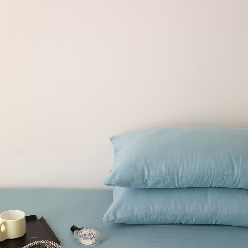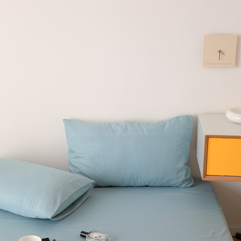 8小时家纺 2022新款全棉双层纱单枕套 孔雀蓝