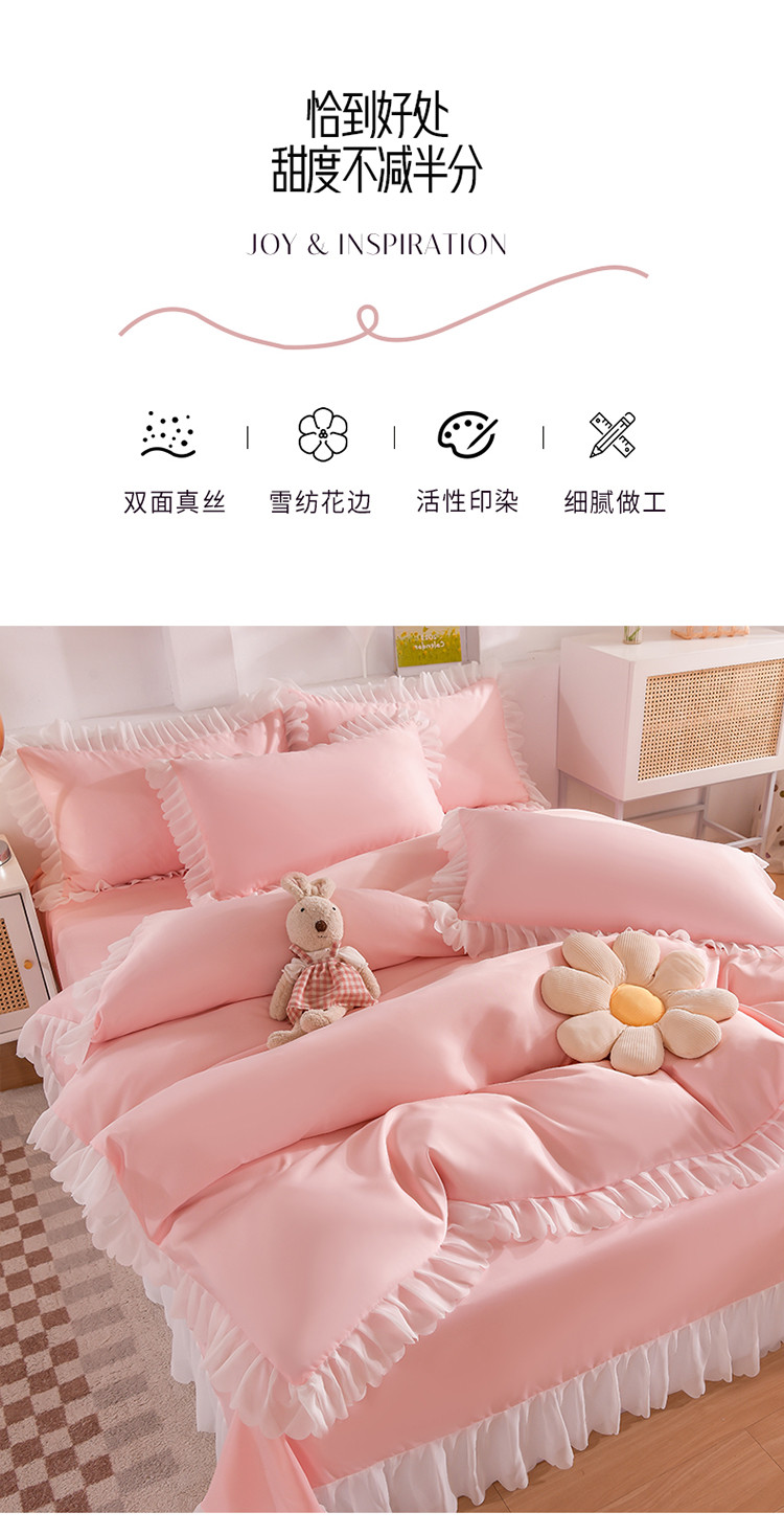商品名称:梦之岛 2022新款挚爱水洗真丝四件套 挚爱-浅粉