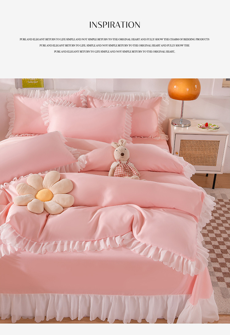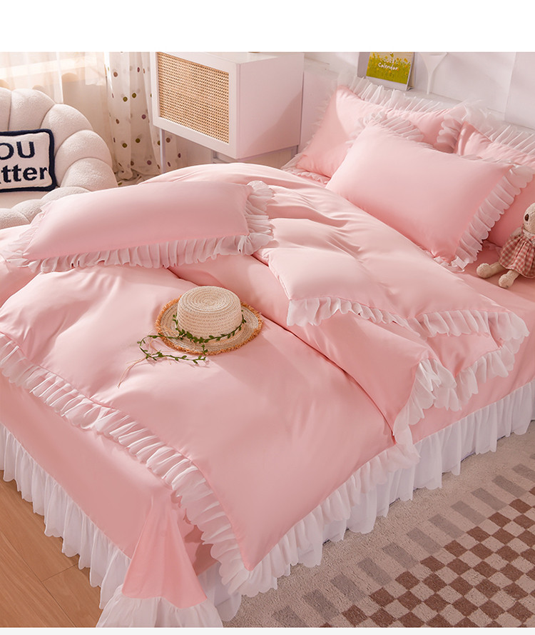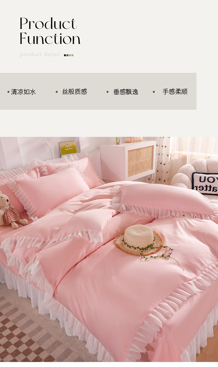 (总)梦之岛 2022新款泡泡亲肤公主风夏被四件套,淡黄绿,蜜桃粉,奶油黄,浅水绿,天空蓝