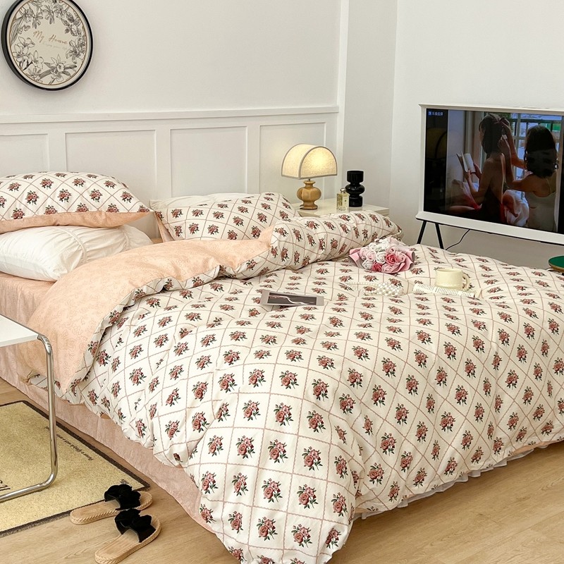 (总)昔可家纺 2024新款印花牛奶绒四件套系列-ins少女系列,芭蕾蛋糕,芭蕾美学,粉格蝴蝶结,黑粉芭蕾蝴蝶结,蓝格蝴蝶结,樱桃奶油蛋糕