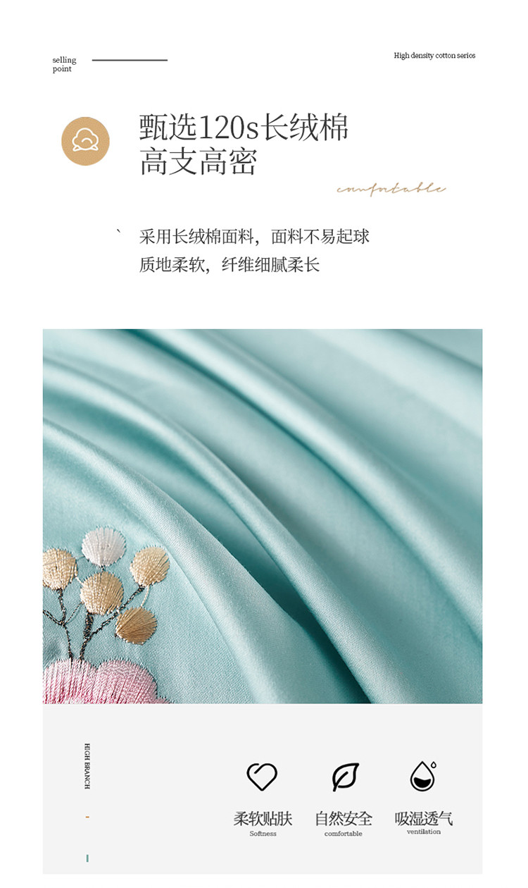 (总)博之洋婚庆 2025新款纯棉全棉长绒棉刺绣绣花高端礼盒四件套-花之语系列,豆绿,豆沙,粉灰,高级灰