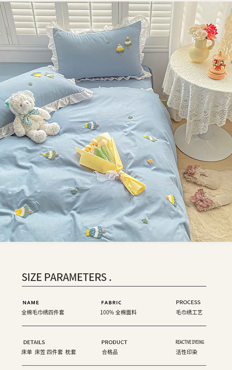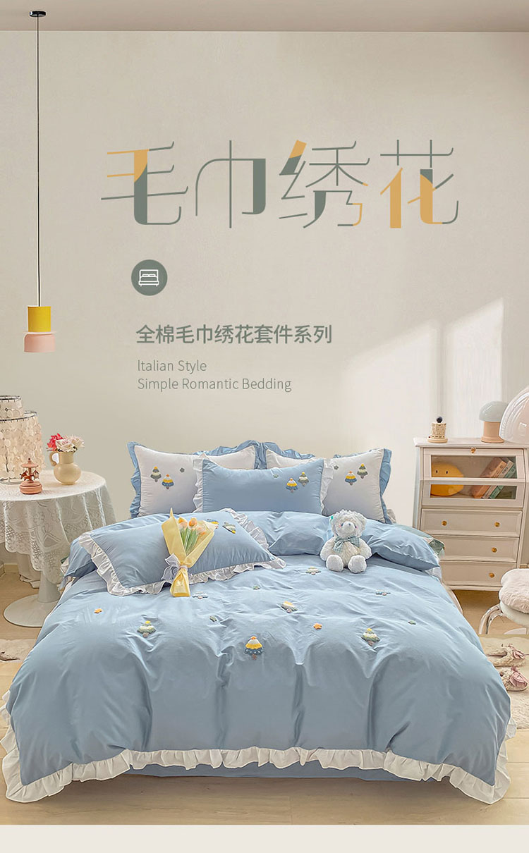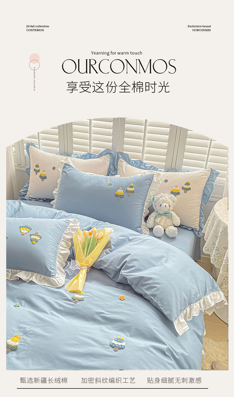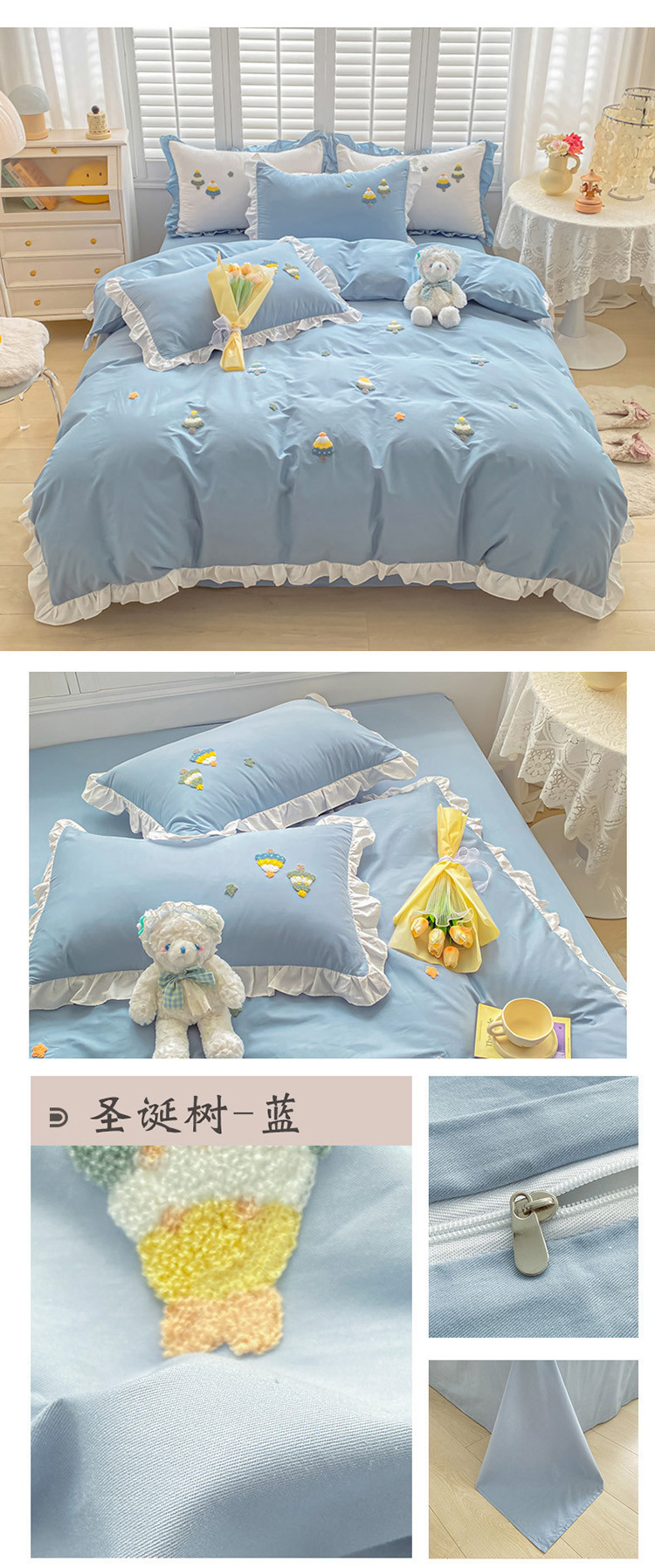 当前位置: 91家纺网 > 商品网购 > 床品套件 > 四件套 > 毛巾绣四件套 > 全棉13376荷叶边毛巾绣公主风床单床笠款四件套 圣诞树-蓝