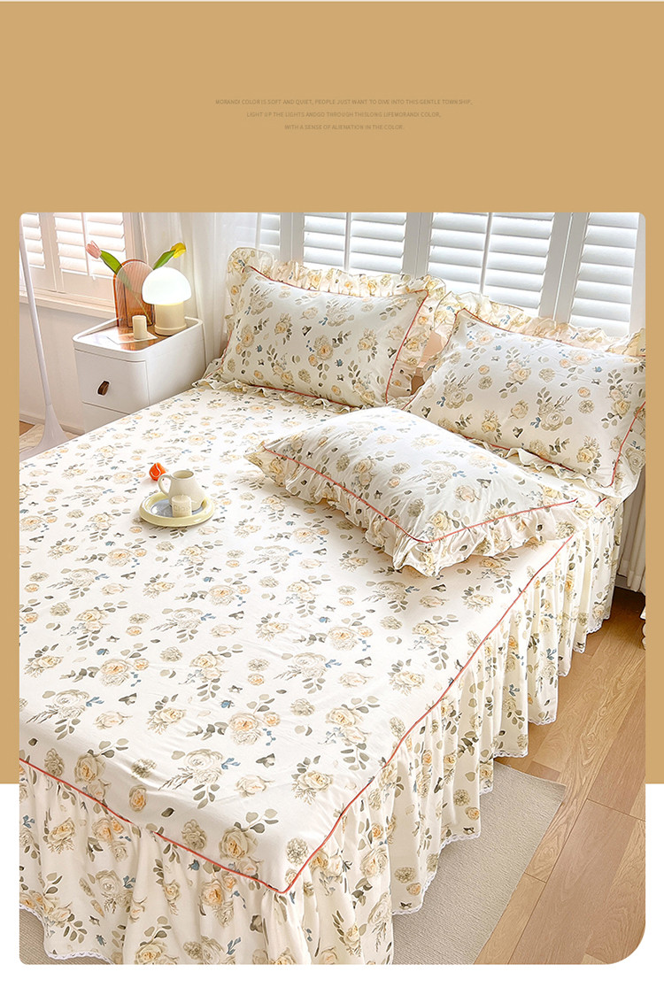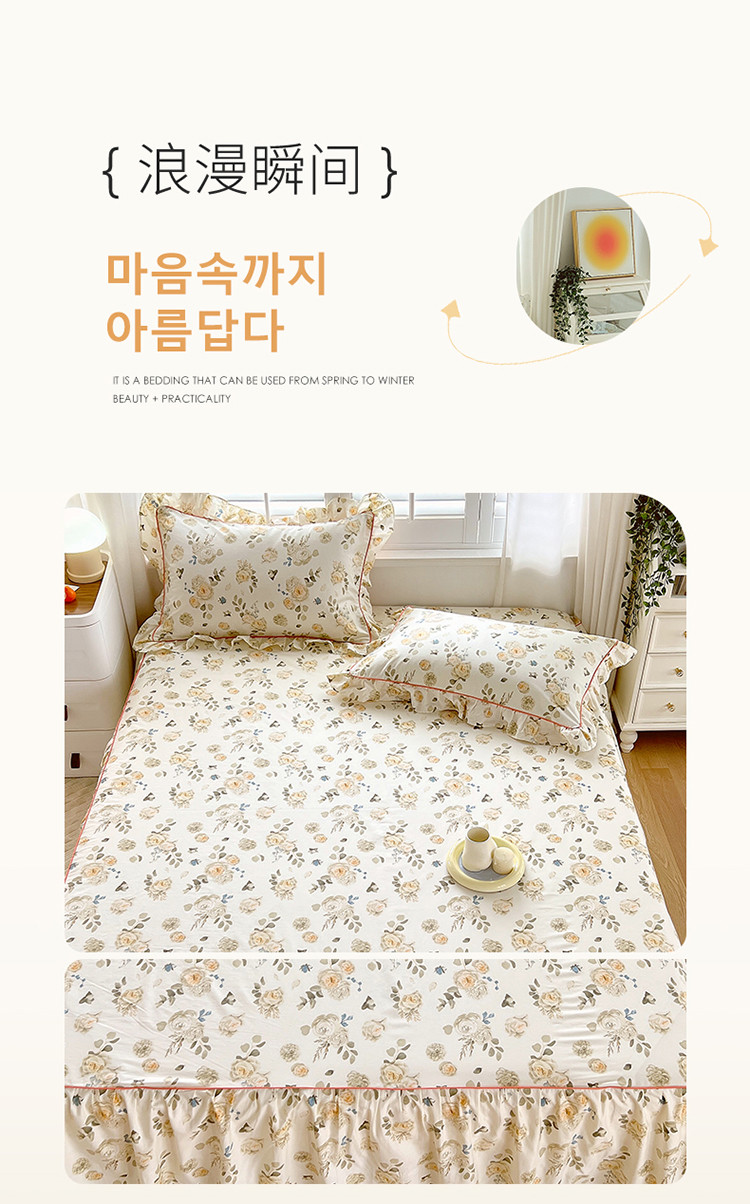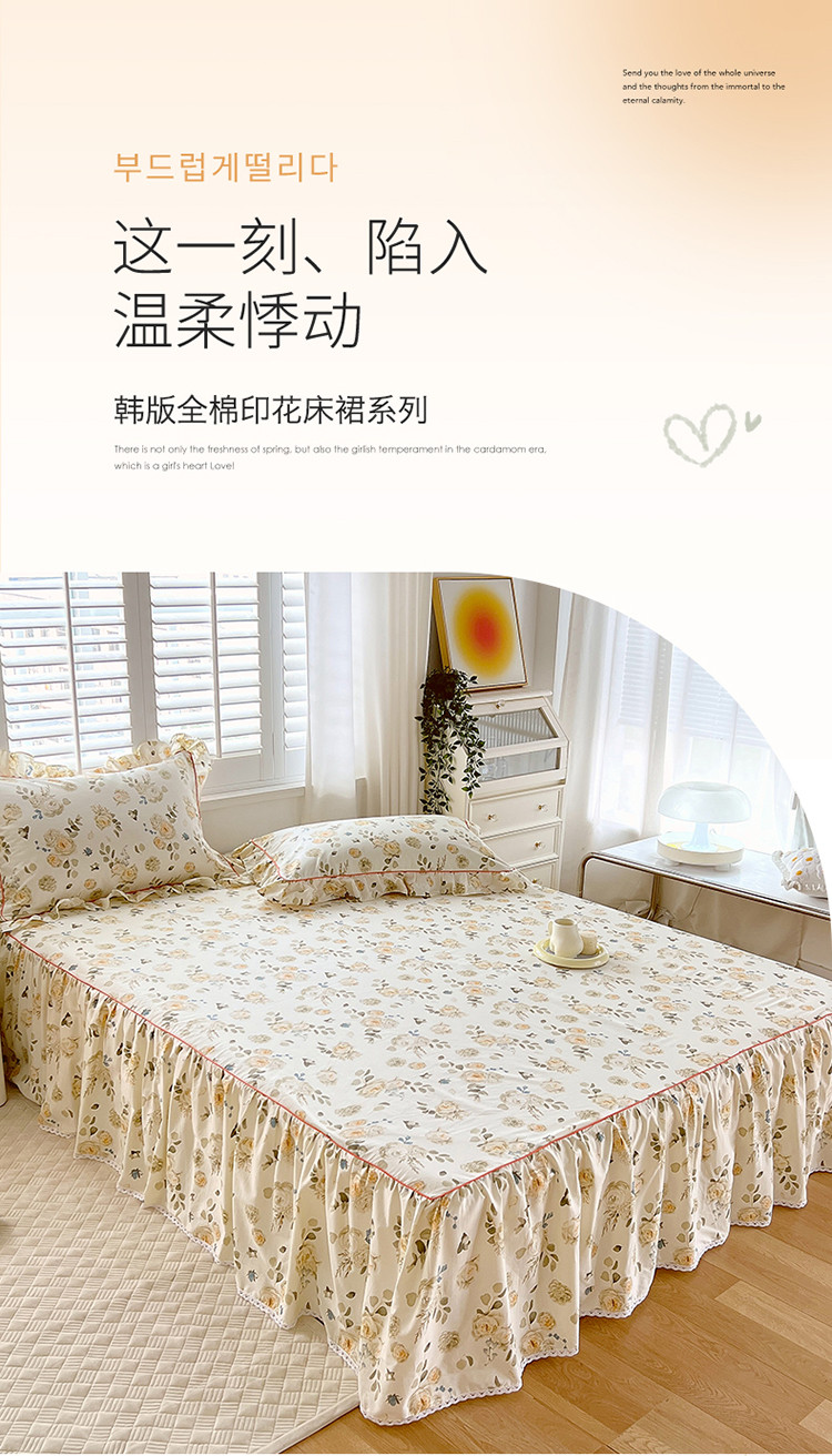 宝齐莱家纺 2022新款韩版全棉13372印花单床裙 爱伦