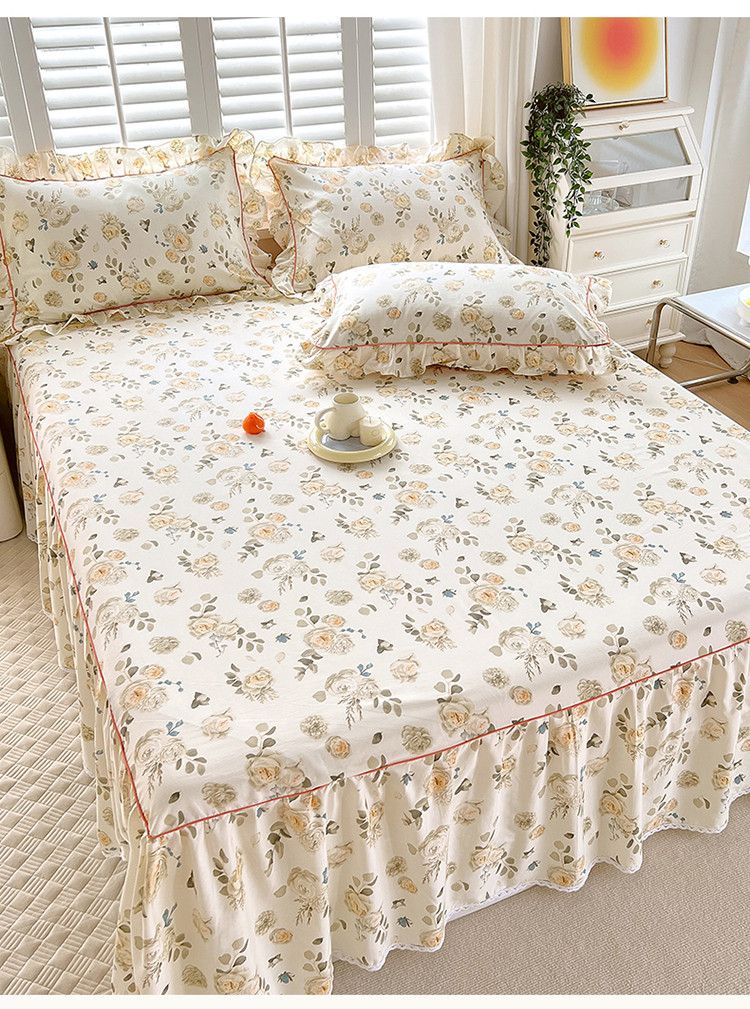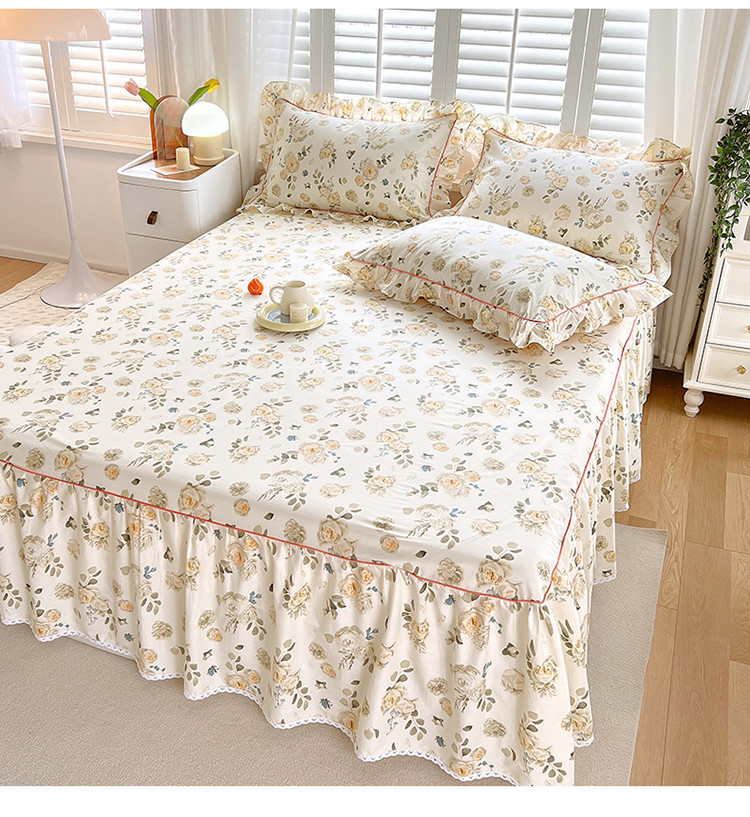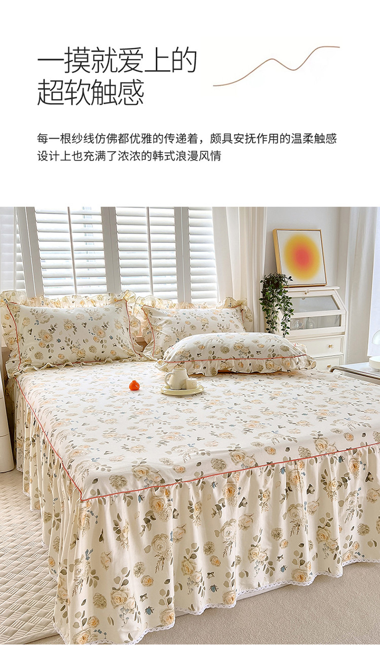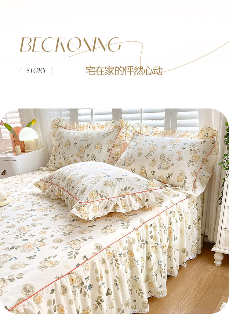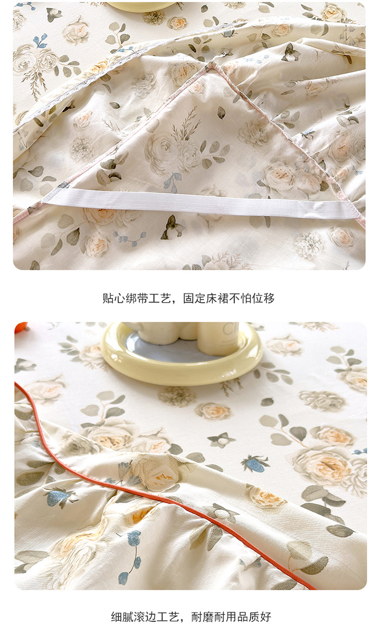 商品名称:宝齐莱家纺 2022新款韩版全棉13372印花单床裙 爱伦