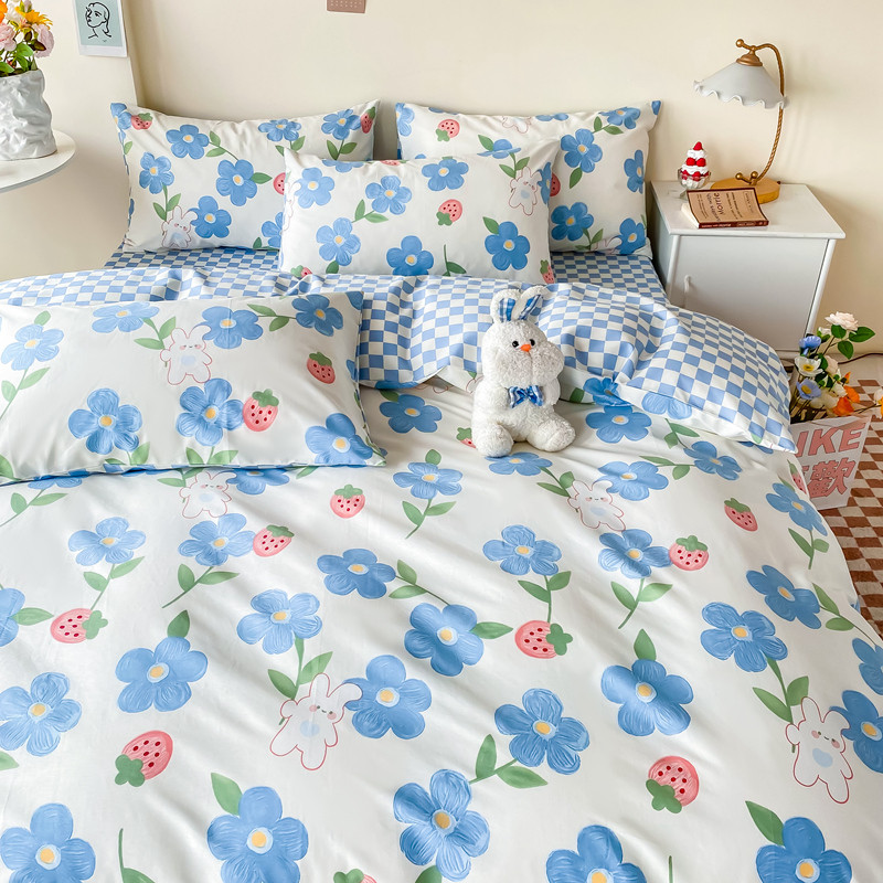 商品名称:西引力 2022新款全棉印花单被套 蓝色心情