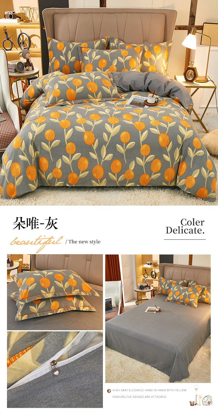 (总)雲归梦 2021新款全棉生态磨毛刺绣四件套,慕思-橙色,慕思-粉紫,慕思-灰,慕思-米黄,慕思-青绿,慕思-天蓝