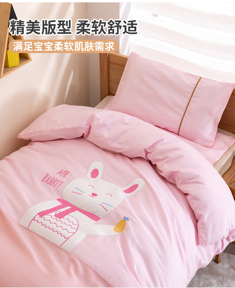 当前位置: 91家纺网 > 商品网购 > 床品套件 > 三件套 > 喜多兔2022新60s长绒棉纯棉幼儿园三件套 粉色微笑小兔兔