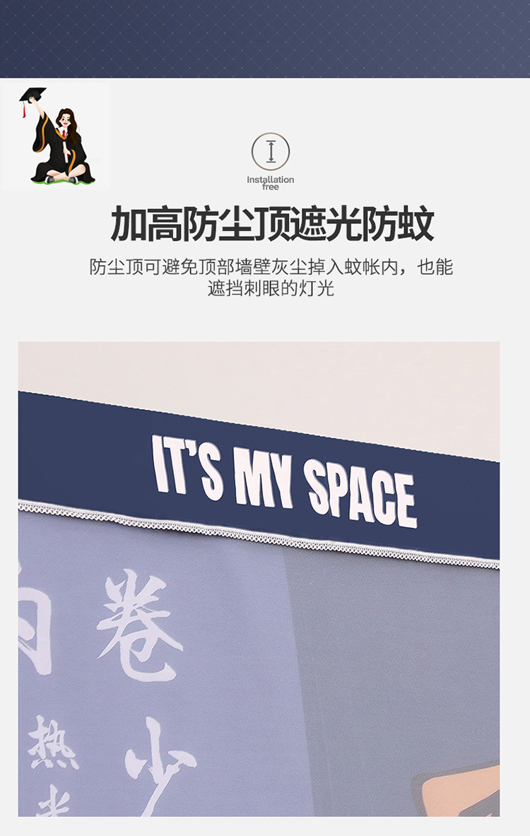 (总)新太阳2022新款新款学生宿舍免安装遮光蚊帐天空系列,梦幻星系,外太空,星球大战,宇航员-蓝,宇航员-黑