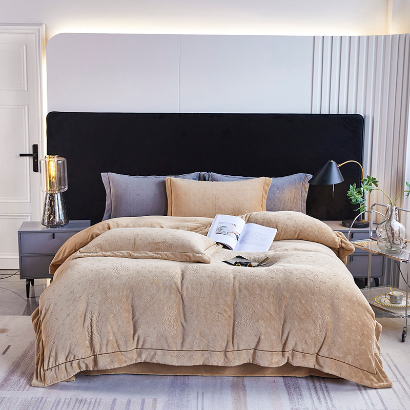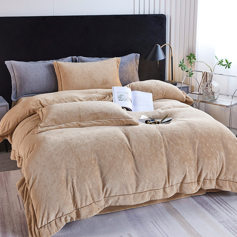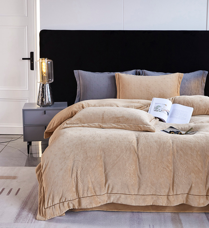 凡客家居 2022新款牛奶绒雕花系列四件套 靓仔熊-棕卡