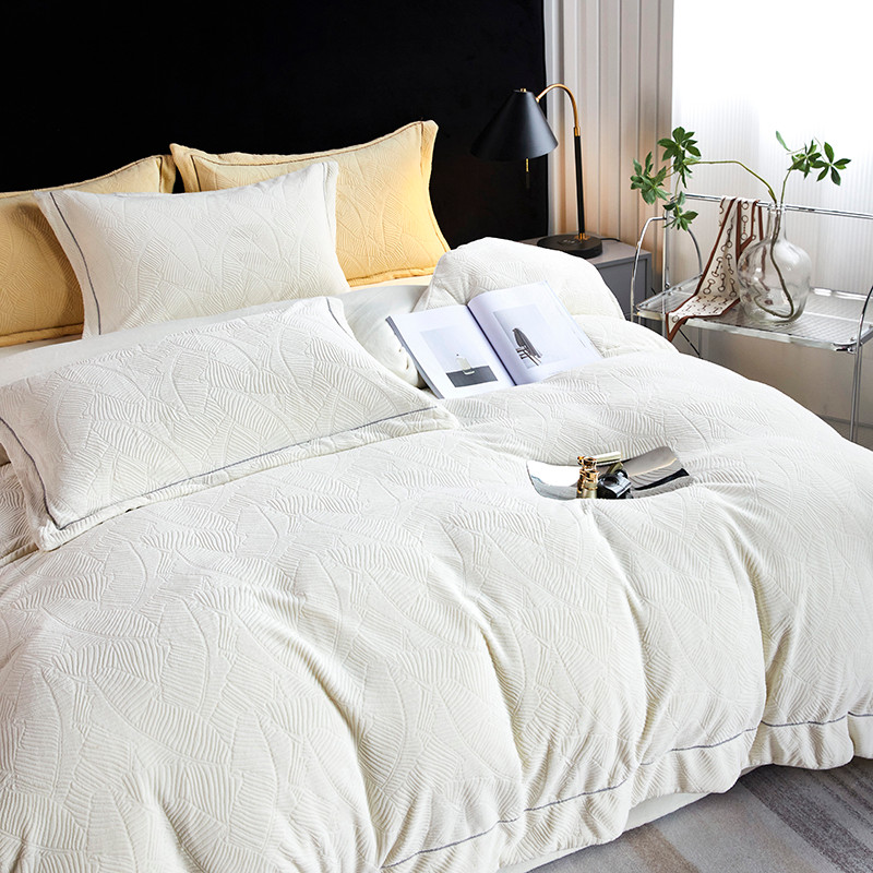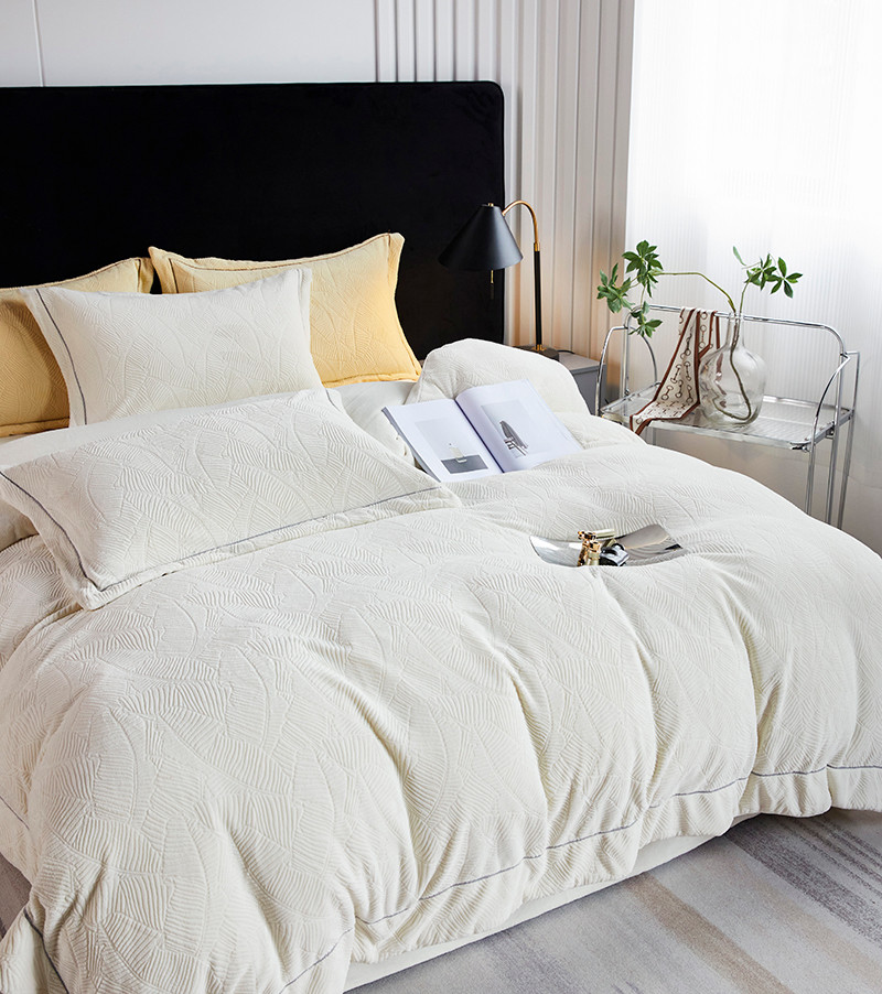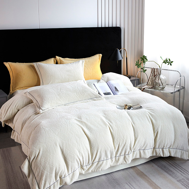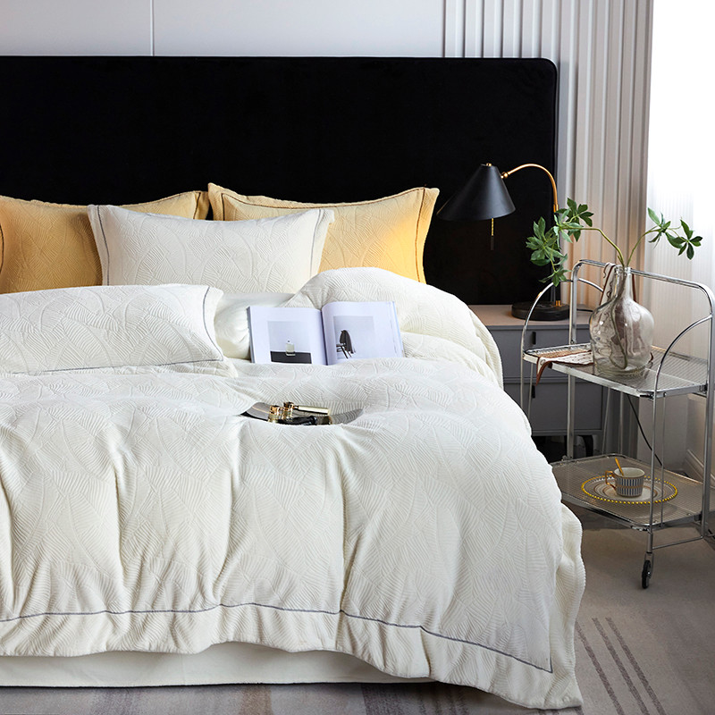 凡客家居 2022新款牛奶绒雕花系列四件套 维娜-珍珠白