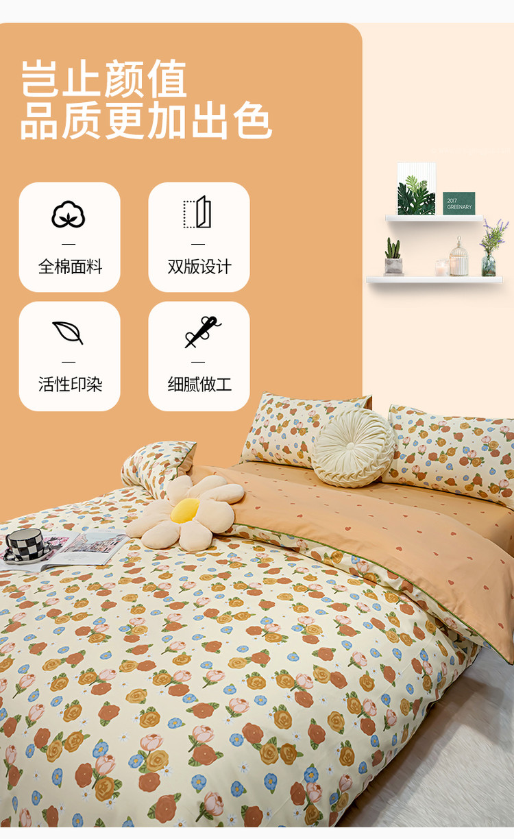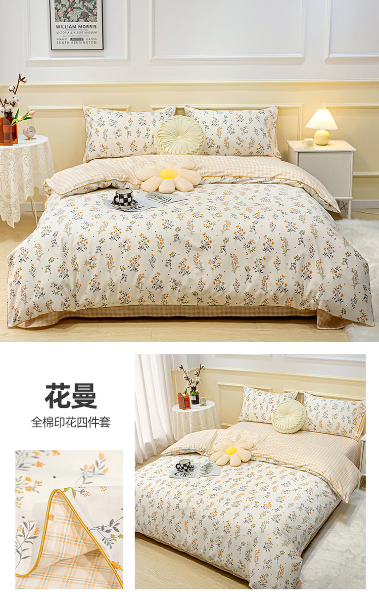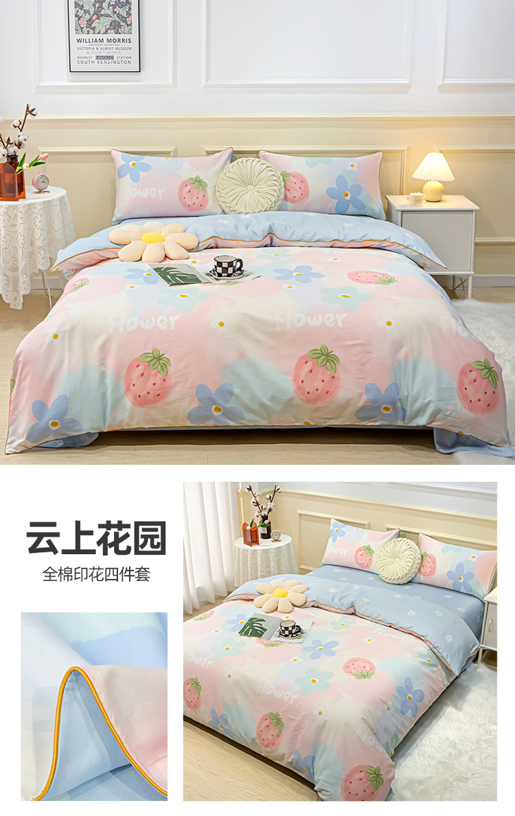 总凡客家居 2022新款13372纯棉印花滚边工艺款四件套学生宿舍三件套