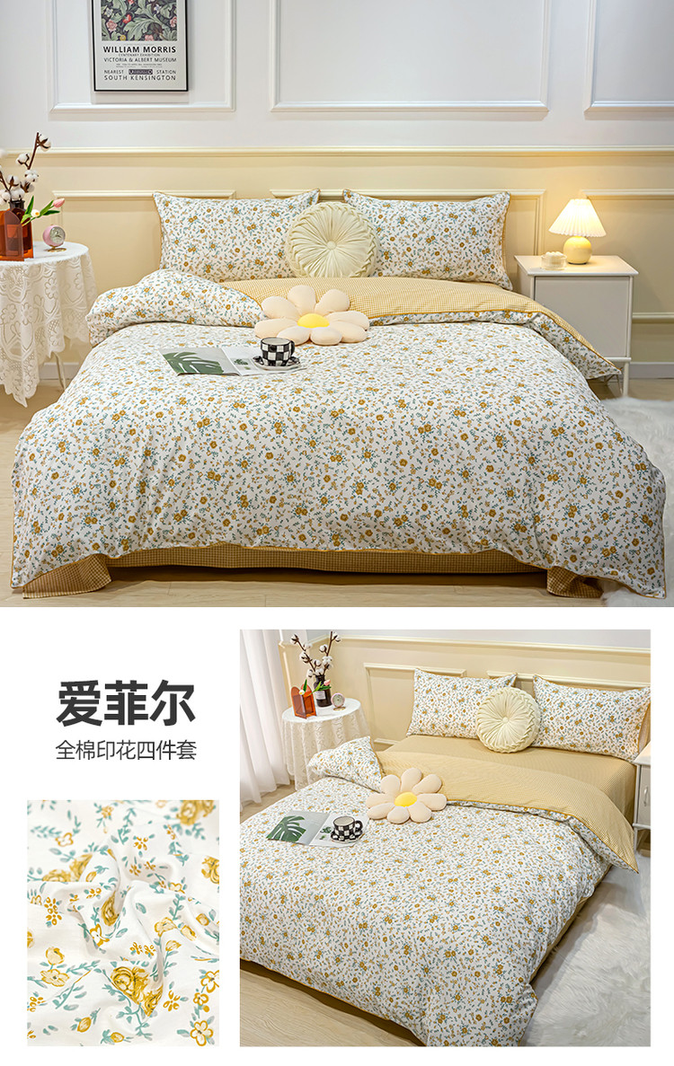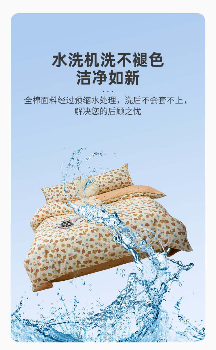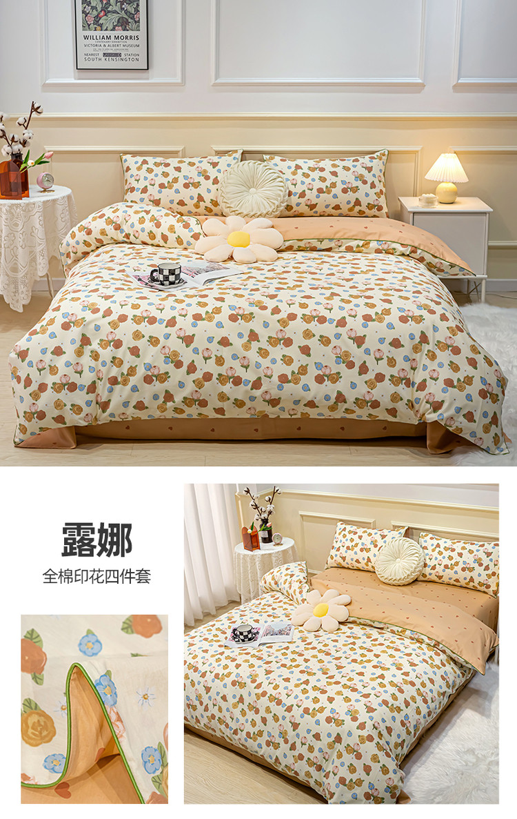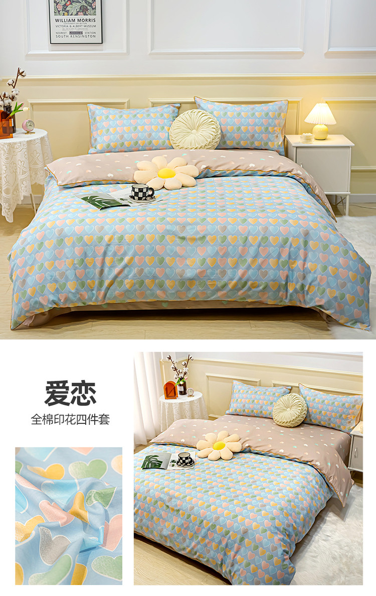 总凡客家居 2022新款13372纯棉印花滚边工艺款四件套学生宿舍三件套
