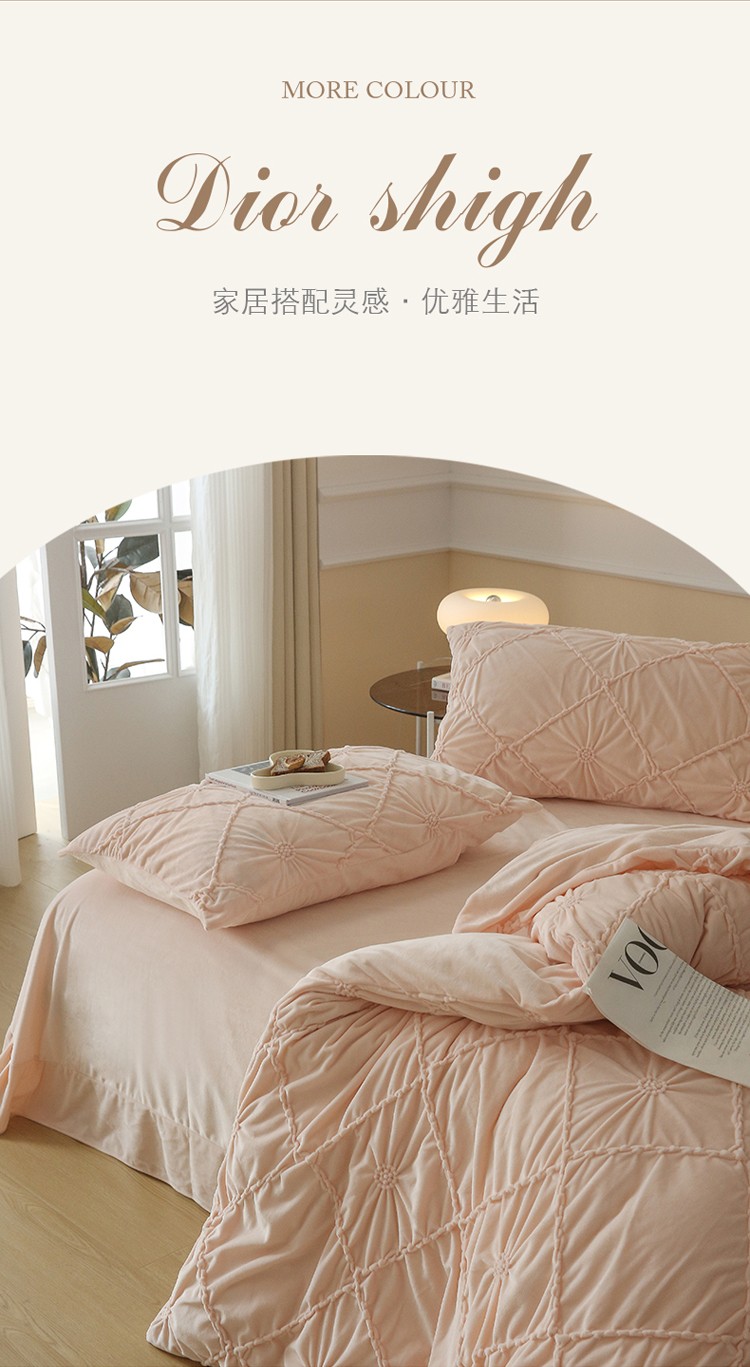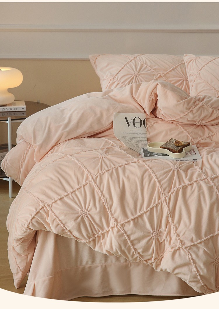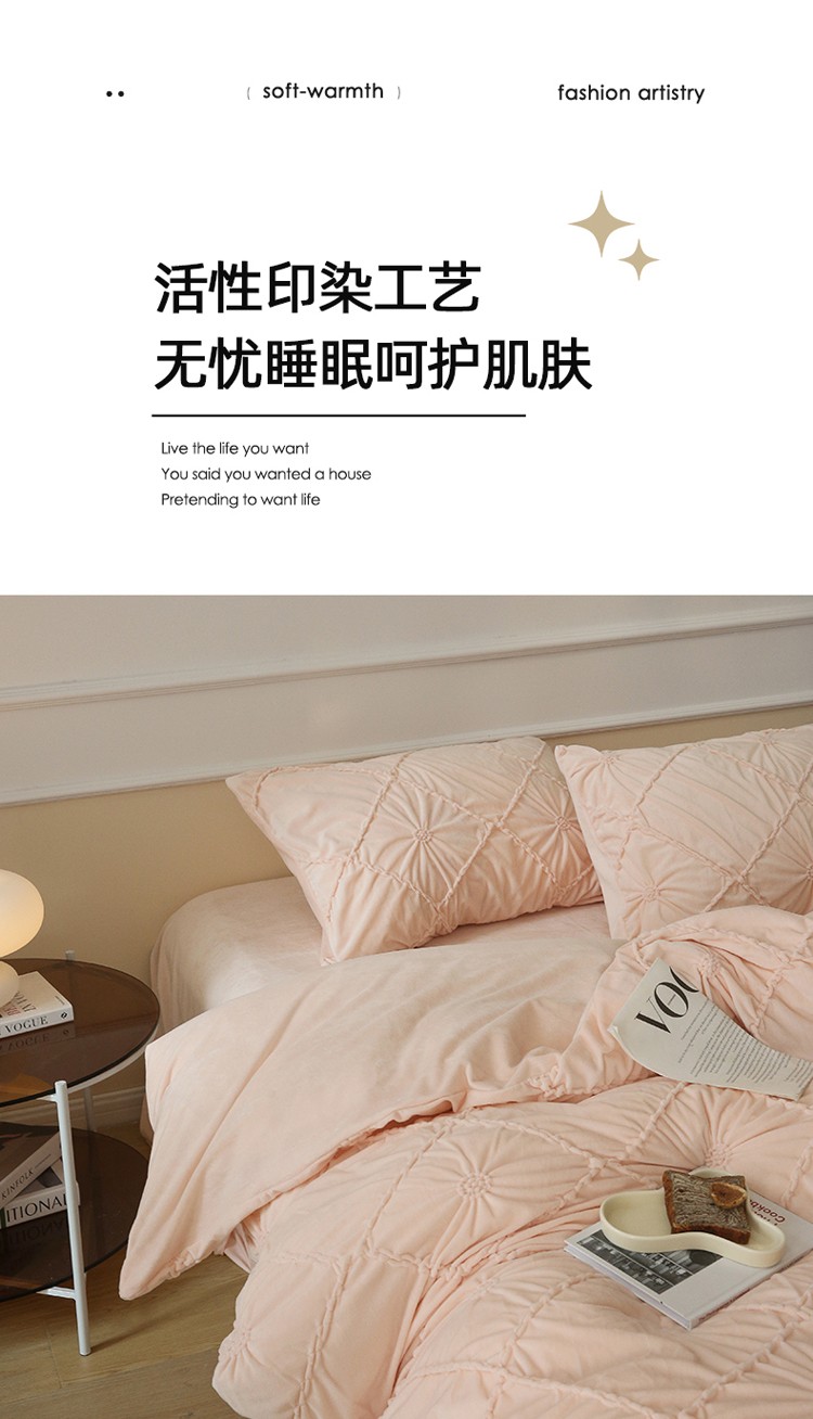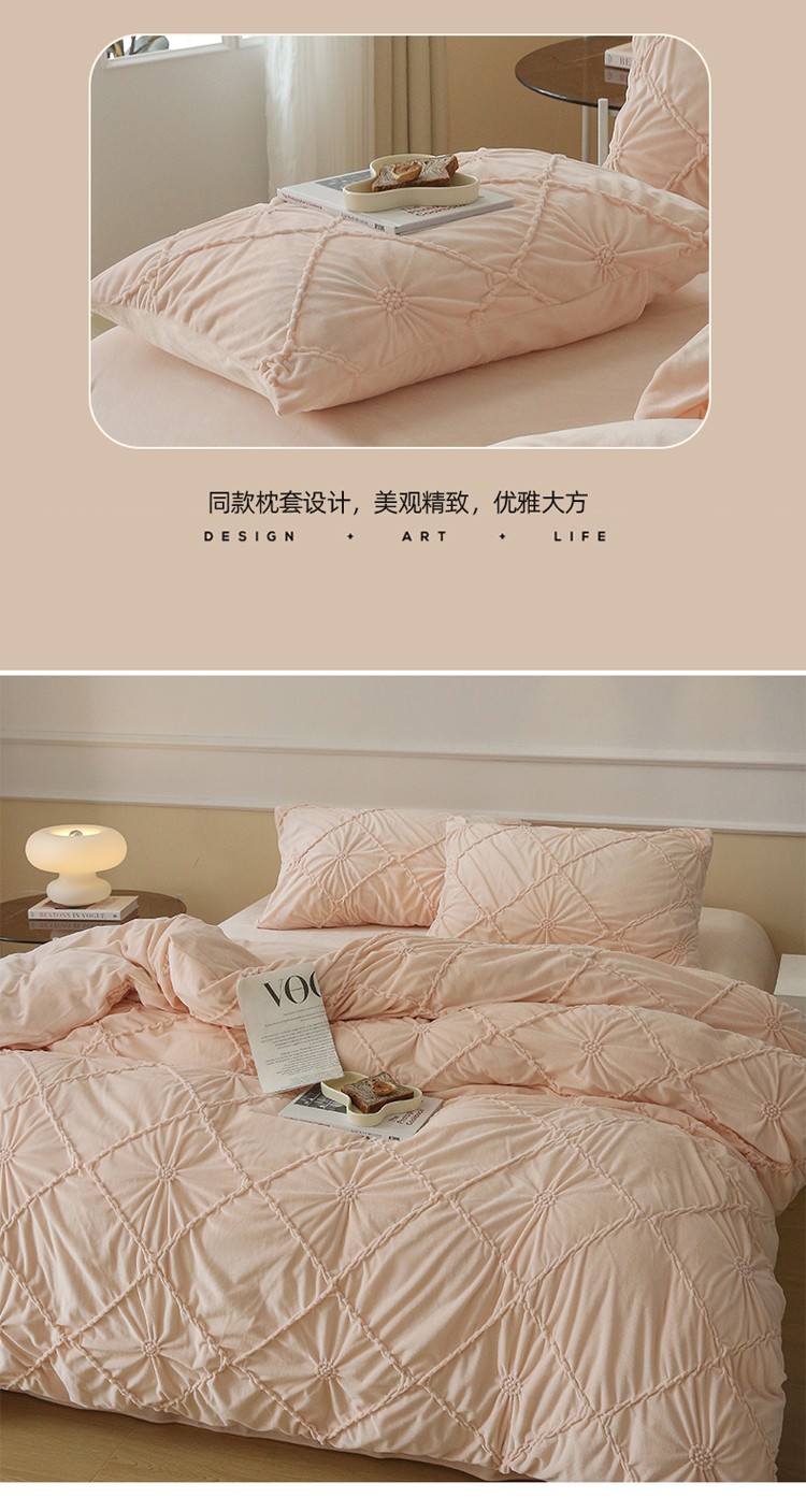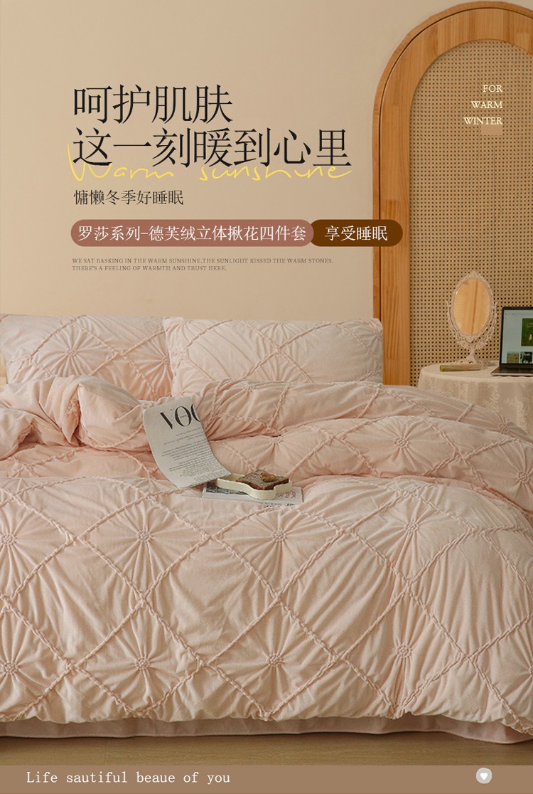 商品名称:玛奇朵 2022新款德芙绒立体揪花四件套--罗莎系列 罗莎-少女粉