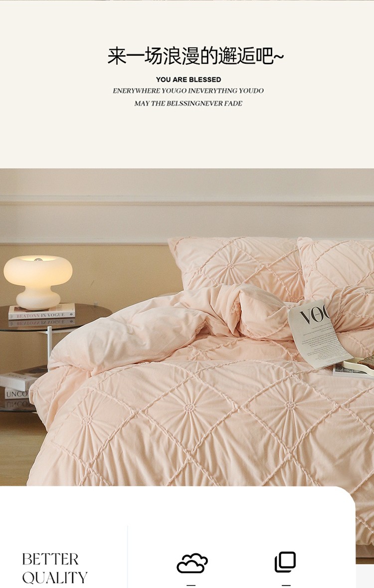 (总)玛奇朵 2025新款韩系少女全棉立体提花四件套-,青纱粉黛