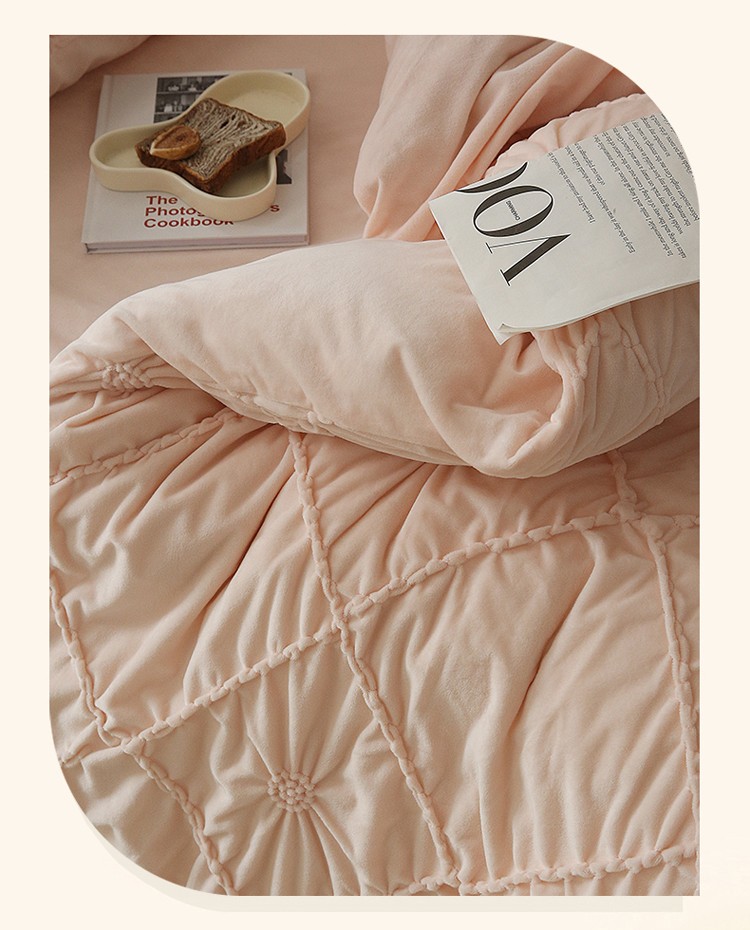 (总)玛奇朵 2025新款秋冬新品230克工艺立体雕花牛奶绒四件套 花满溪系列,花满溪-粉,花满溪-灰,花满溪-卡其