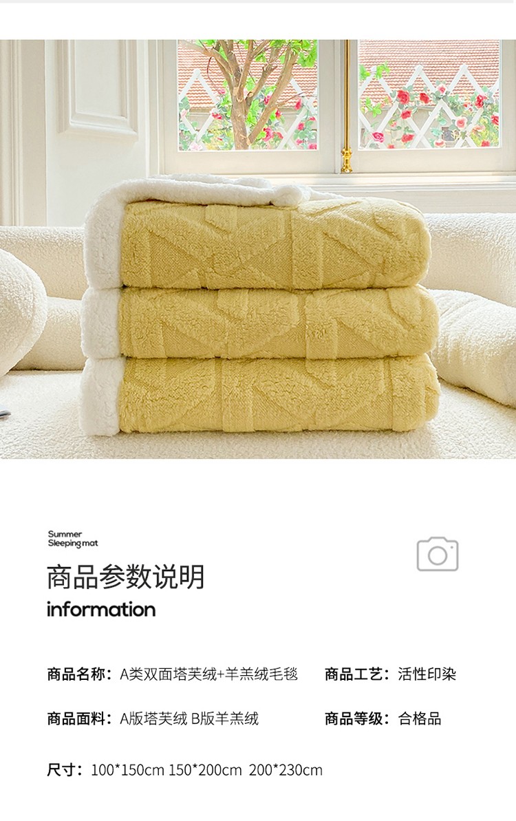 商品名称:呗旺鹿新A类双面塔芙绒羊羔绒毛毯办公室午睡盖毯子直播 格调