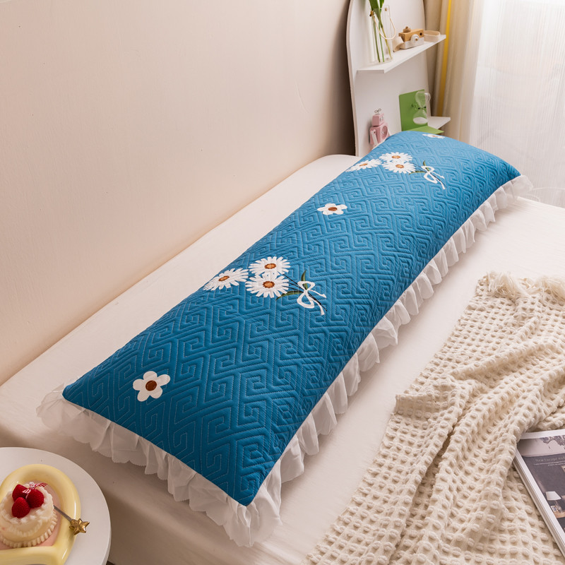 新款磨毛夹棉花边双人长枕套 花海
