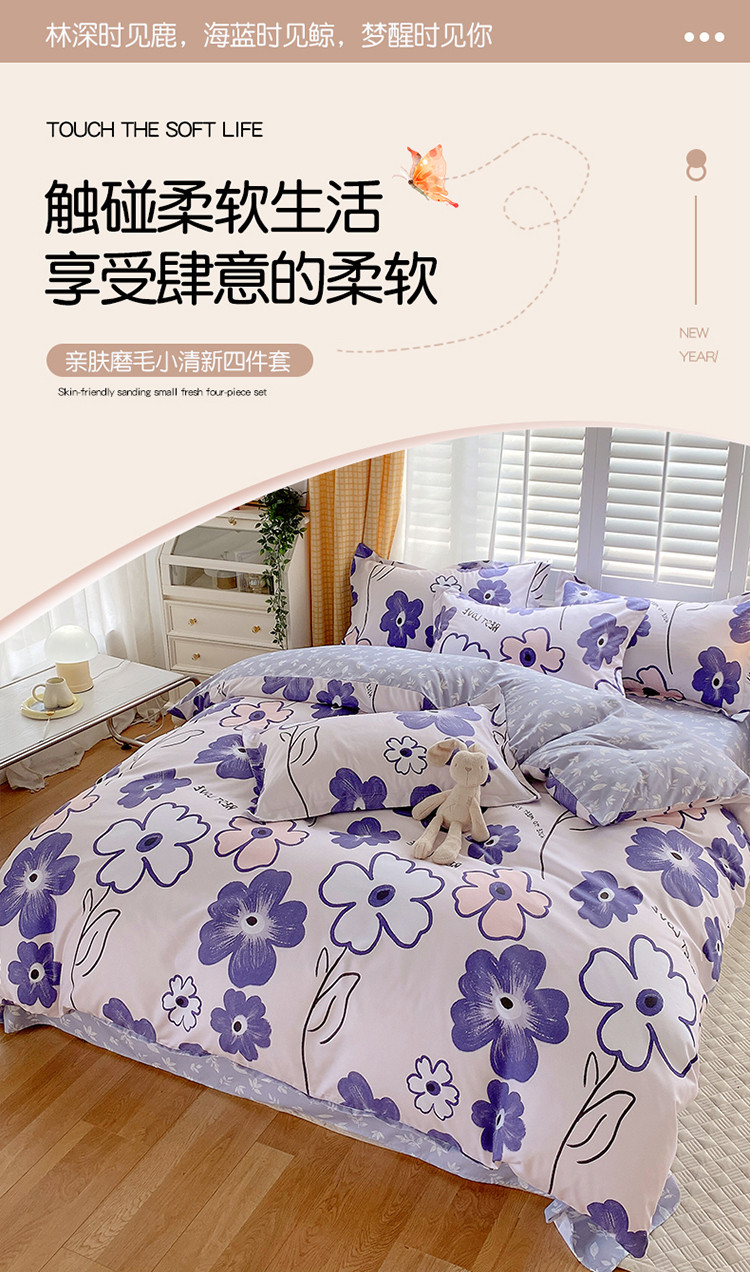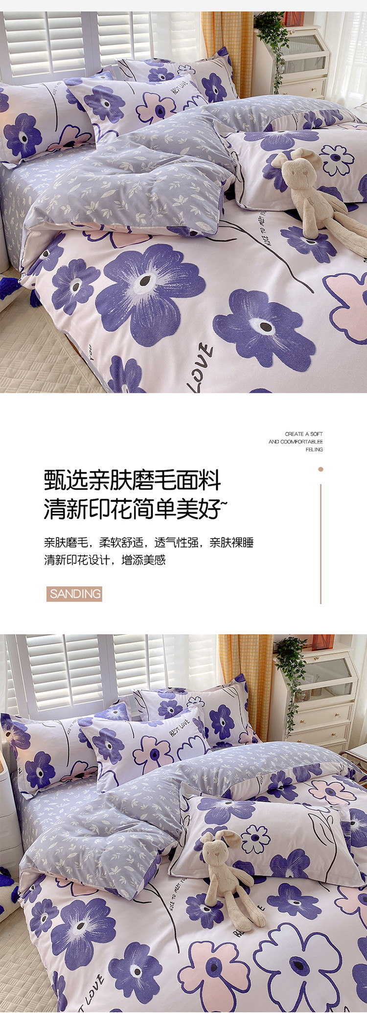 当前位置: 91家纺网 > 商品网购 > 床品套件 > 四件套 > 化纤普通四件套 > 艾橙 秋冬新款140g植物羊绒磨毛四件套系列 浅浅花香