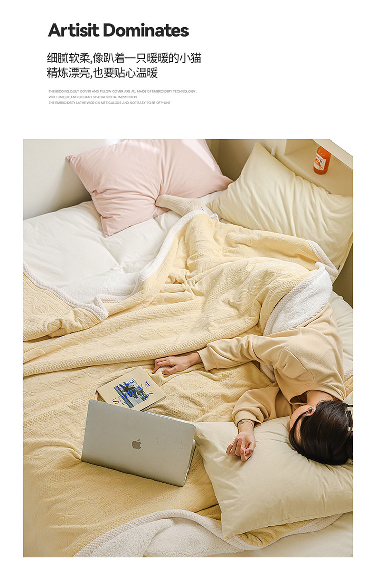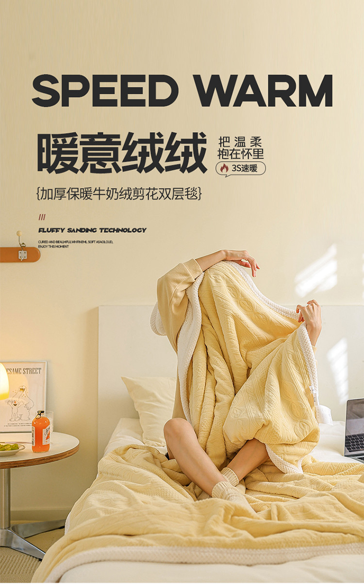 商品名称:寐眠 2022新款牛奶绒剪花双层毯 泡芙米