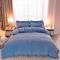 畅畅家纺 2022新款韩版荷叶边刺绣牛奶绒四件套 一枝独秀-天空蓝