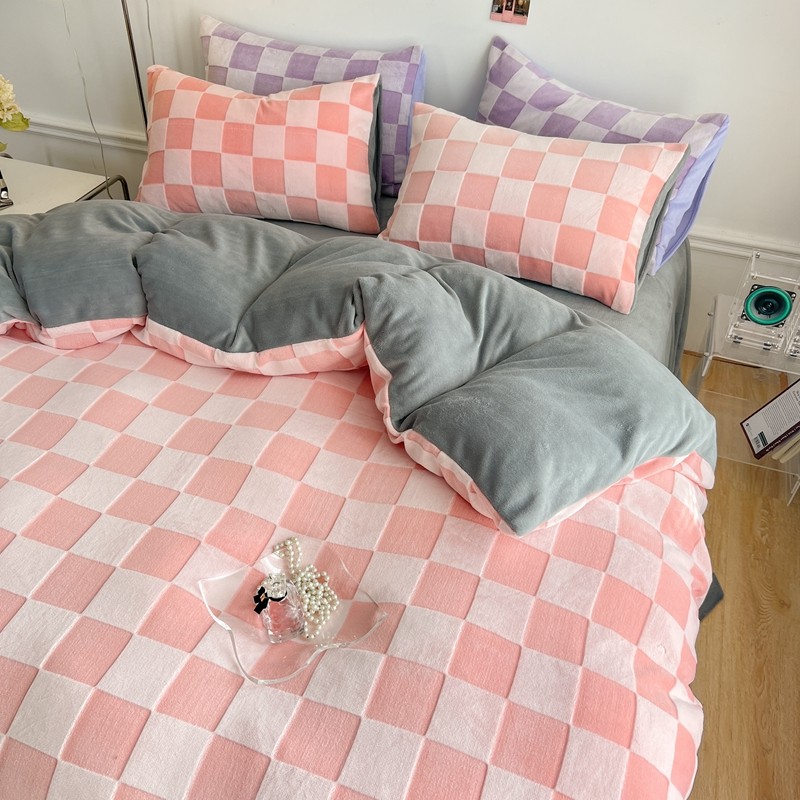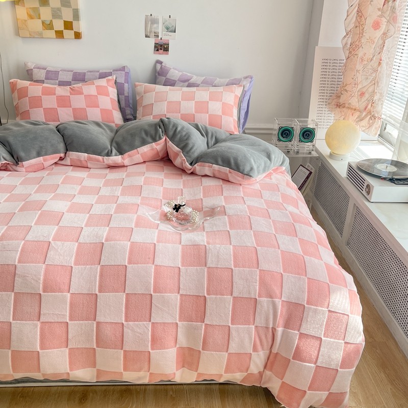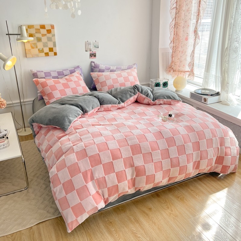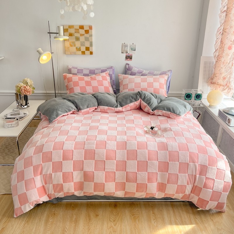珺柔 2022新款提花格子牛奶绒四件套 粉格子