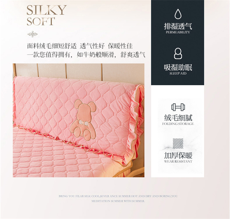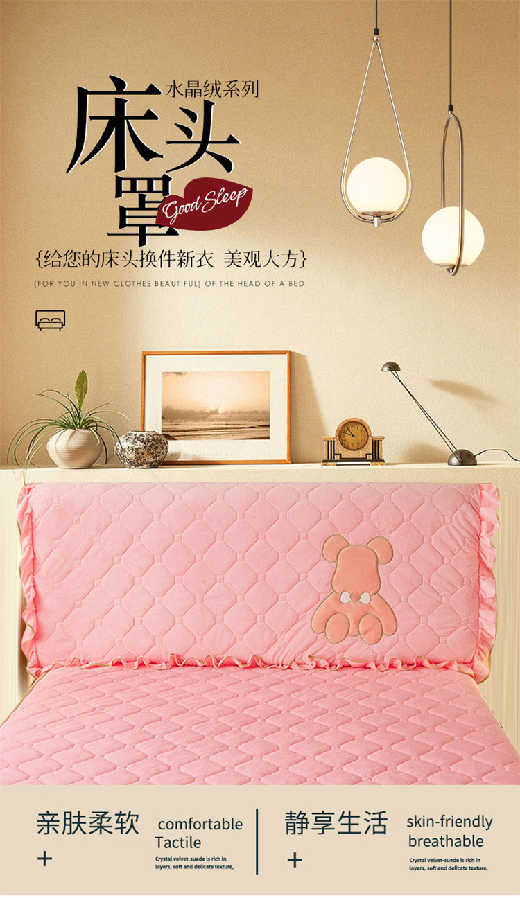 屹成家纺 2024新款水晶绒床头罩-小熊款 粉玉